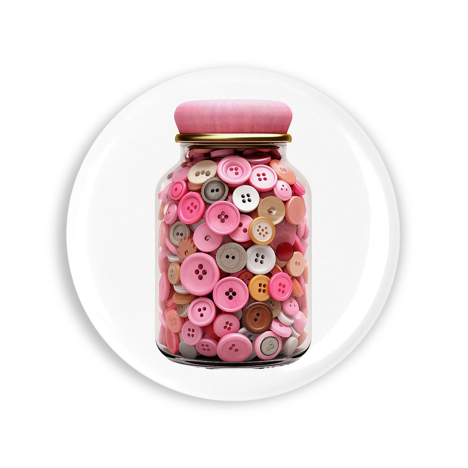 - Set 4 insigne, Borcan cu nasturi roz, NO3670, Metal, 44 mm, Multicolor