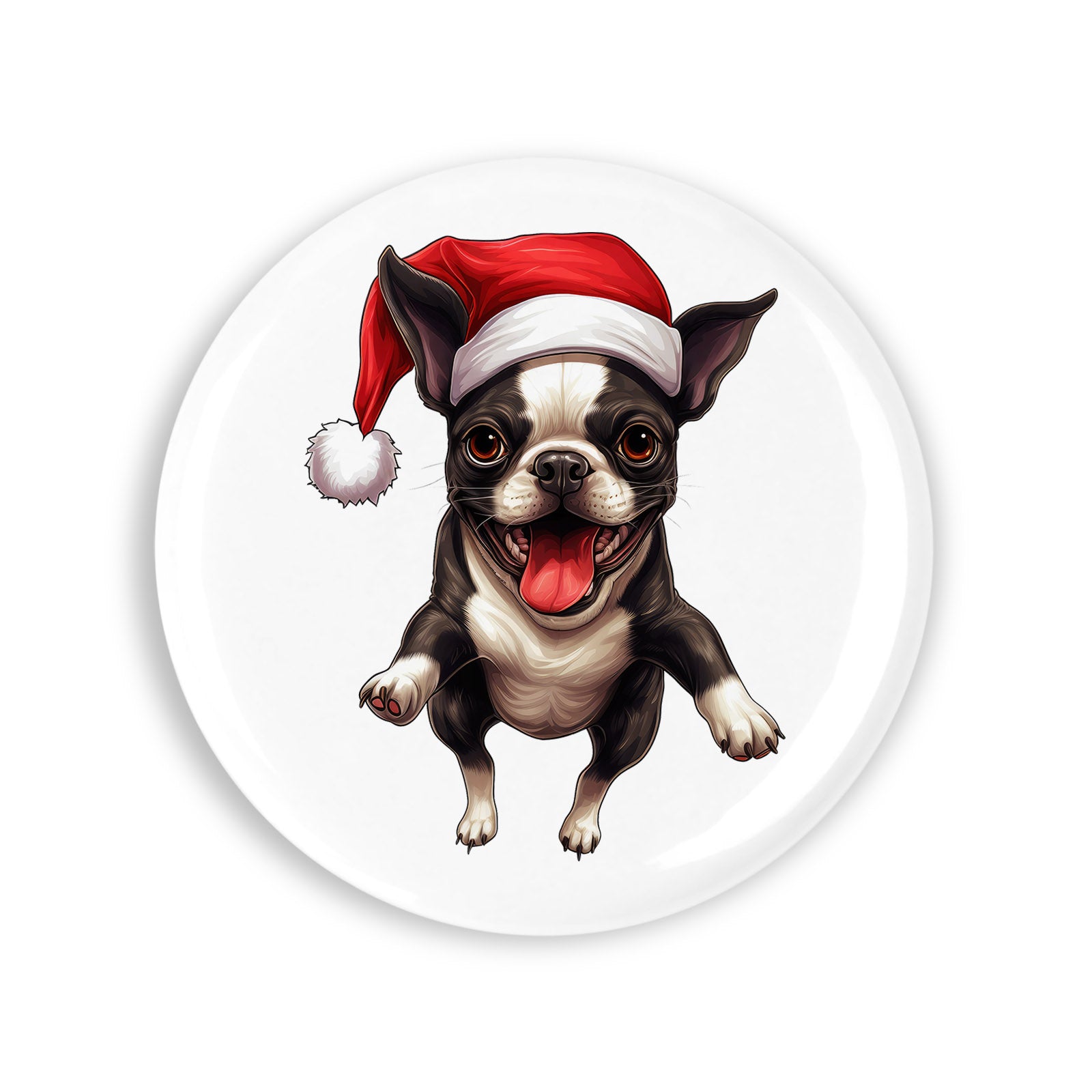 - Set 4 insigne, Boston Terrier cu caciula de craciun, NO5400, Metal, 44 mm, Multicolor