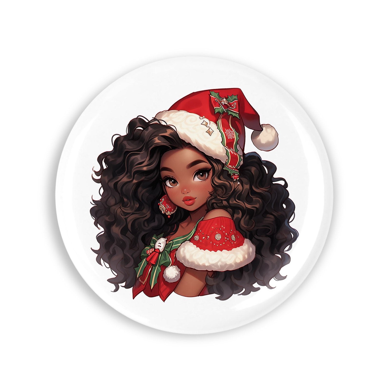 - Set 4 insigne, Bruneta bronzata de craciun, NO1471, Metal, 44 mm, Multicolor