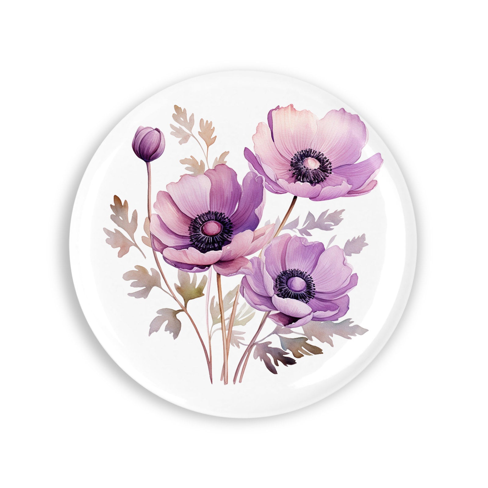 - Set 4 insigne, Buchet cu anemone mov, NO1293, Metal, 44 mm, Multicolor