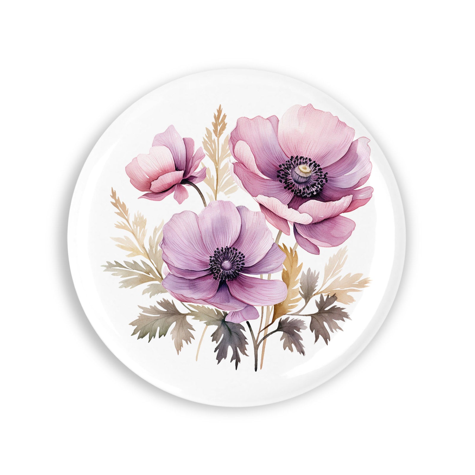 - Set 4 insigne, Buchet cu anemone roz cu frunze, NO4249, Metal, 44 mm, Multicolor