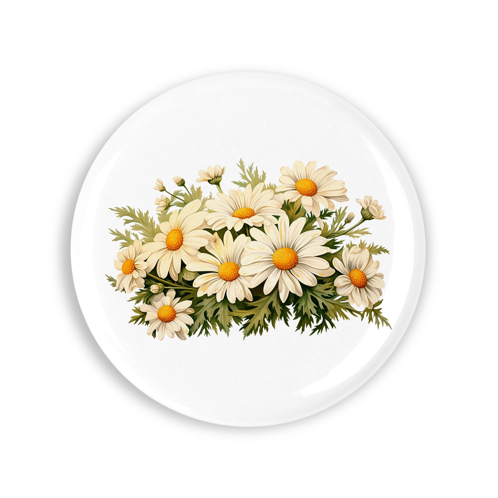 - Set 4 insigne, Buchet cu flori albe, NO2727, Metal, 44 mm, Multicolor