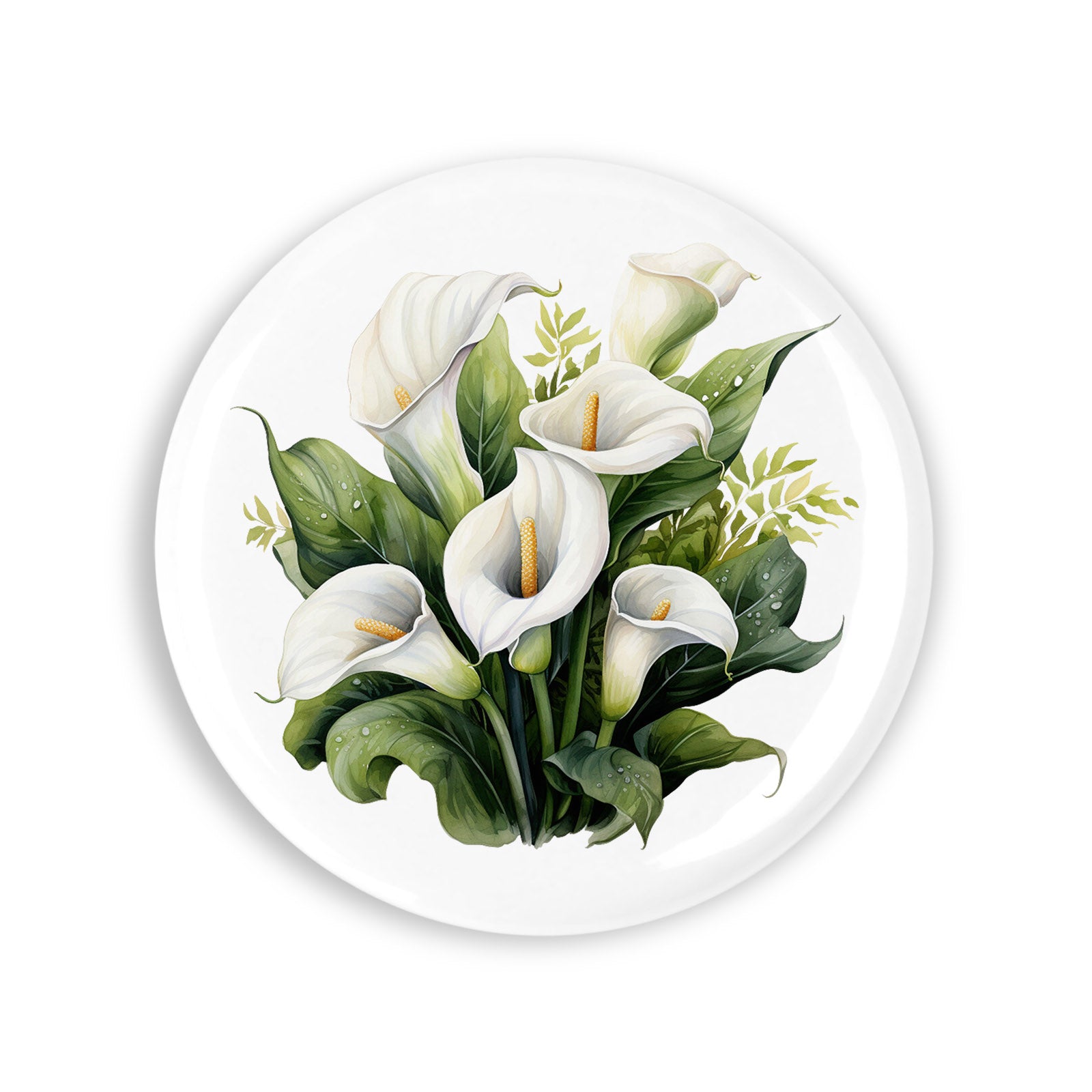 - Set 4 insigne, Buchet cu sase crini albi, NO3773, Metal, 44 mm, Multicolor