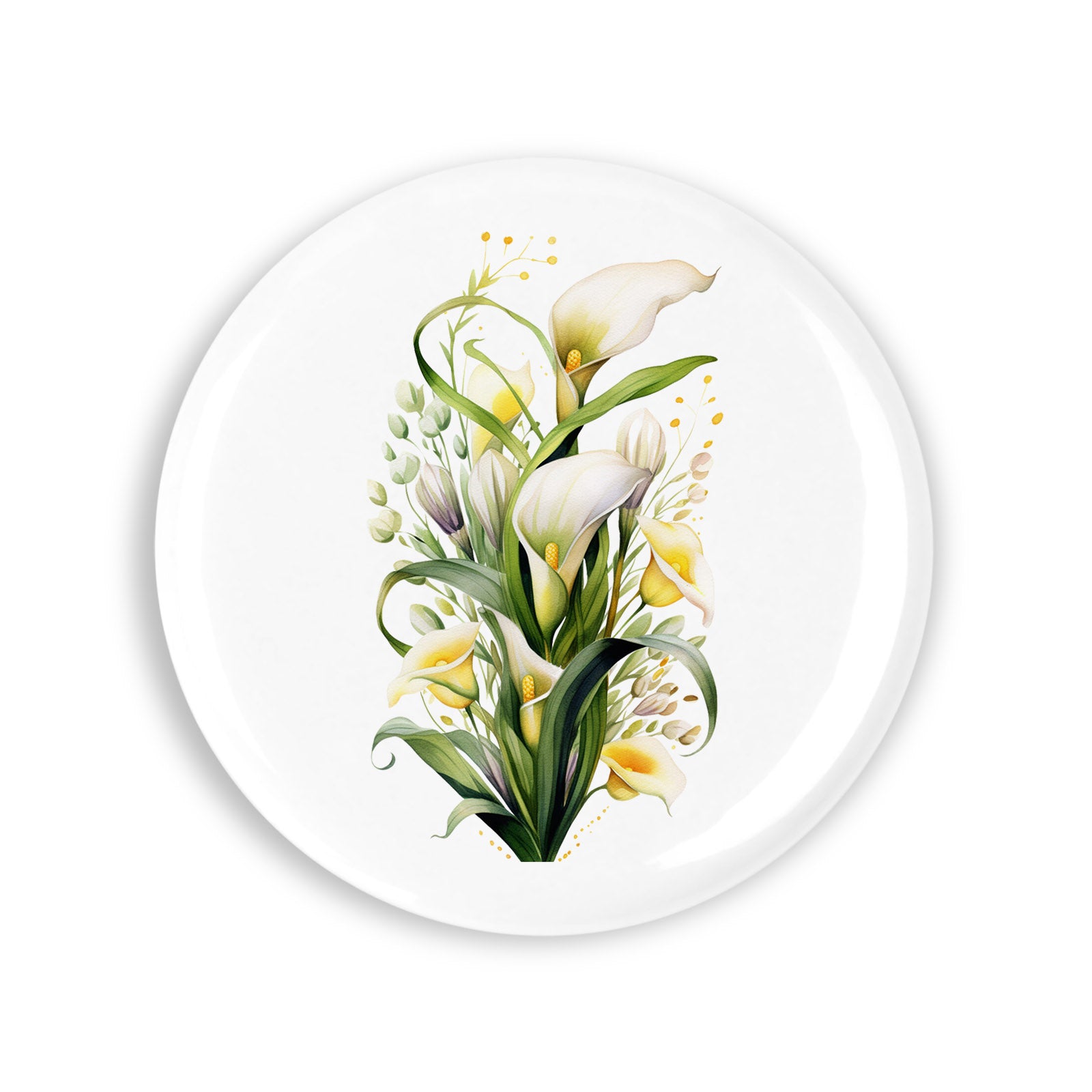 - Set 4 insigne, Buchet de crini galbeni cu flori albe, NO4812, Metal, 44 mm, Multicolor