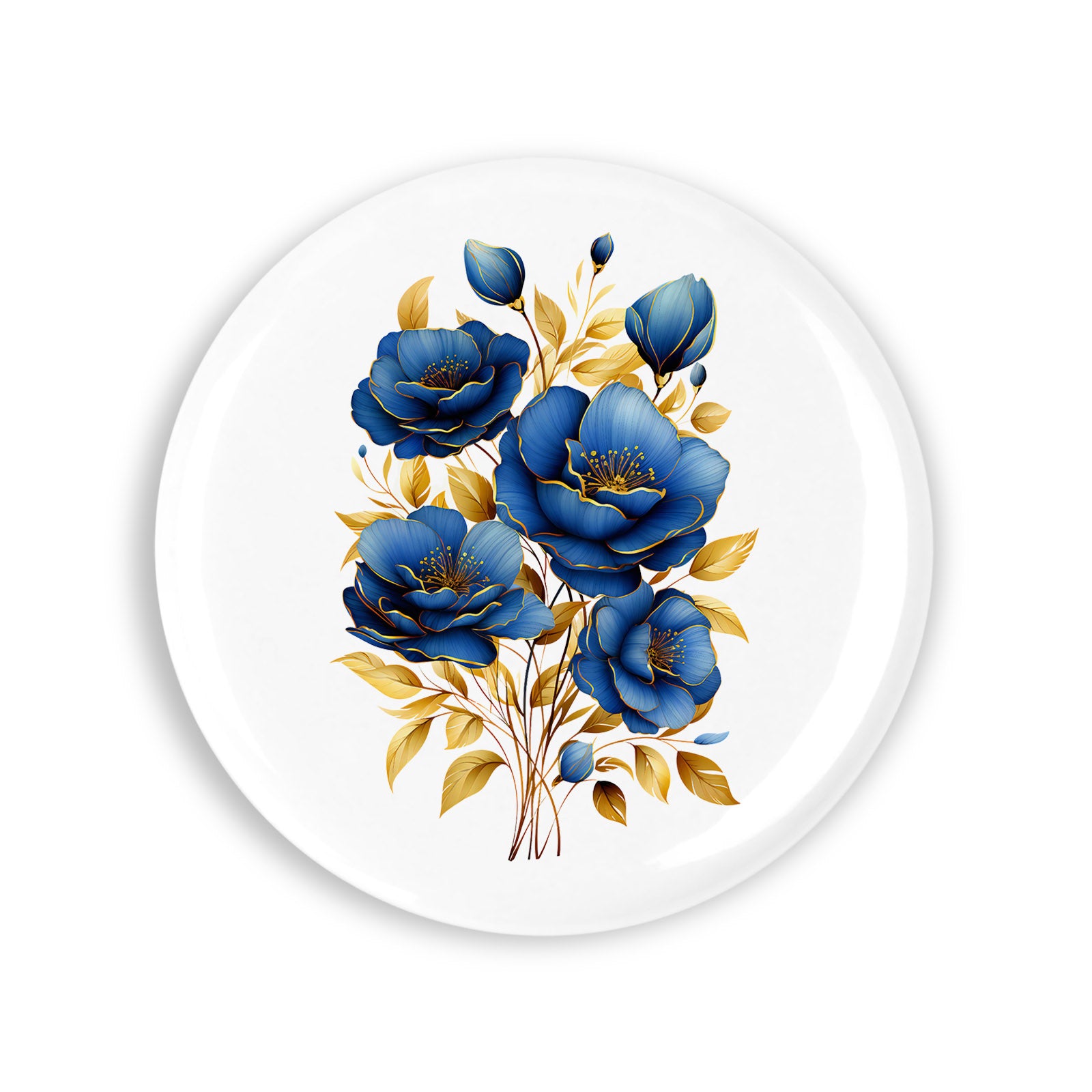 - Set 4 insigne, Buchet de flori albastre, NO1233, Metal, 44 mm, Multicolor