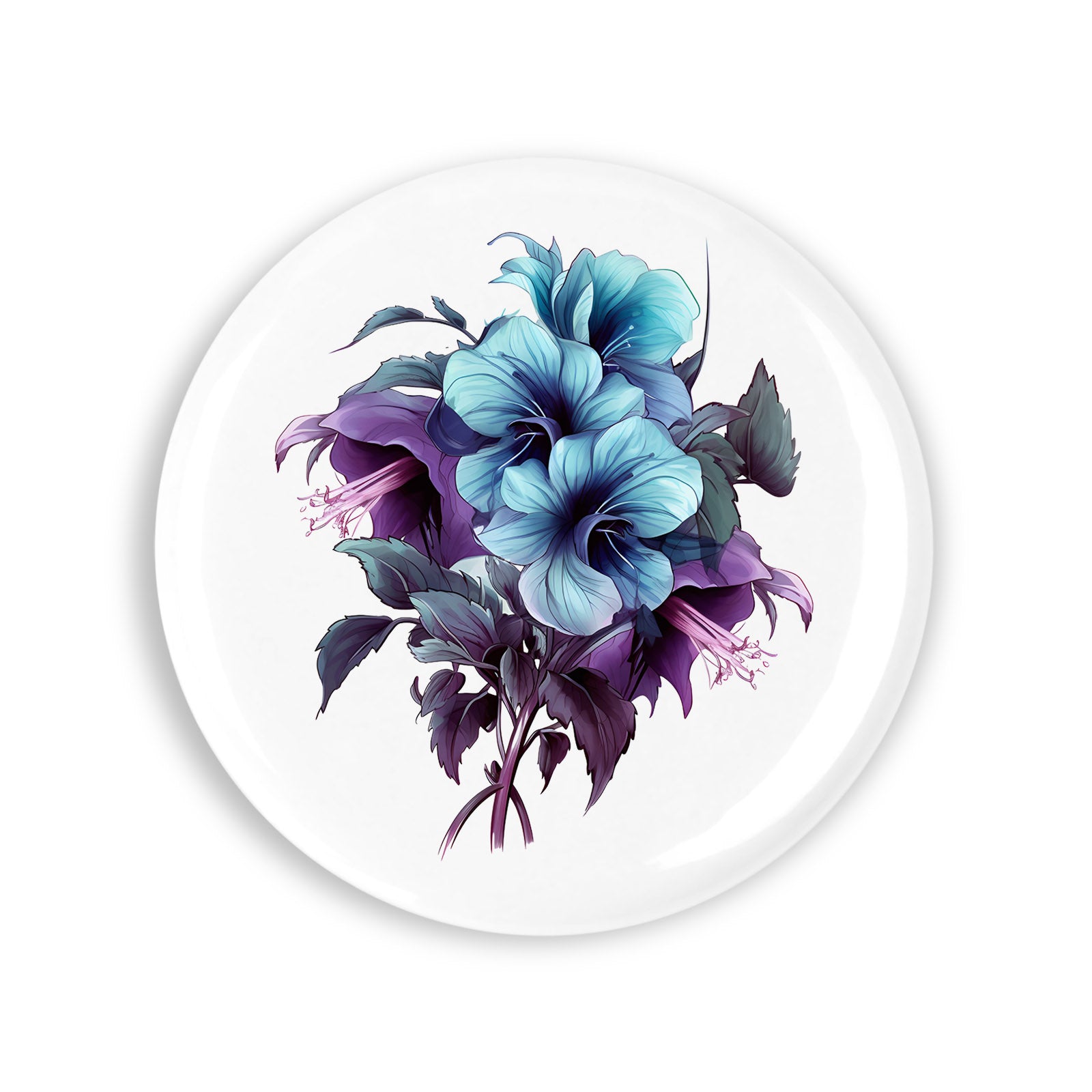 - Set 4 insigne, Buchet de flori albastru mov, NO3332, Metal, 44 mm, Multicolor