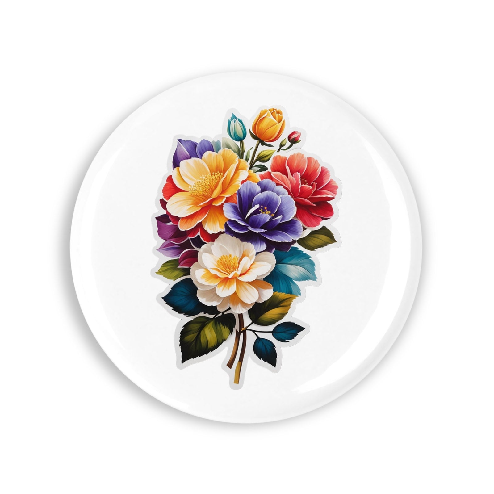 - Set 4 insigne, Buchet de flori Consolida, NO8012, Metal, 44 mm, Multicolor