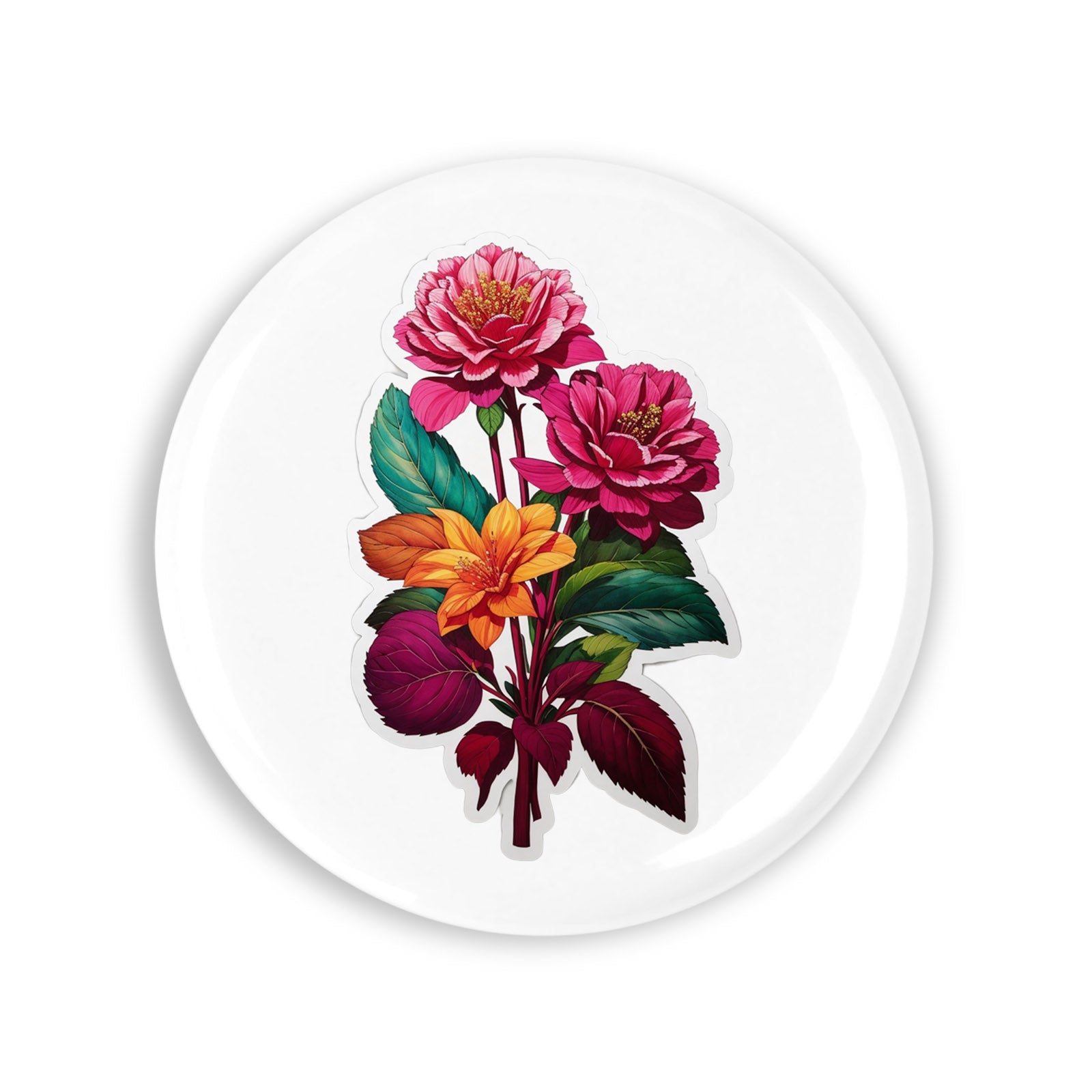 - Set 4 insigne, Buchet de flori de Amaranth, NO7616, Metal, 44 mm, Multicolor