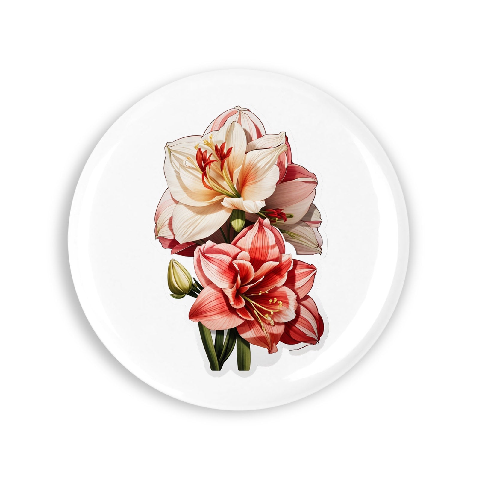 - Set 4 insigne, Buchet de flori de Amaryllis, NO7622, Metal, 44 mm, Multicolor