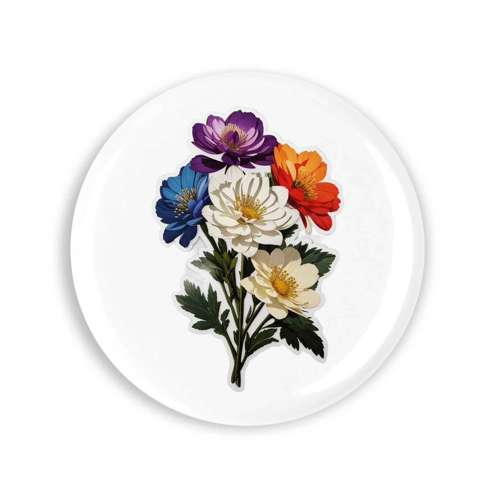- Set 4 insigne, Buchet de flori de negrilica, NO8615, Metal, 44 mm, Multicolor