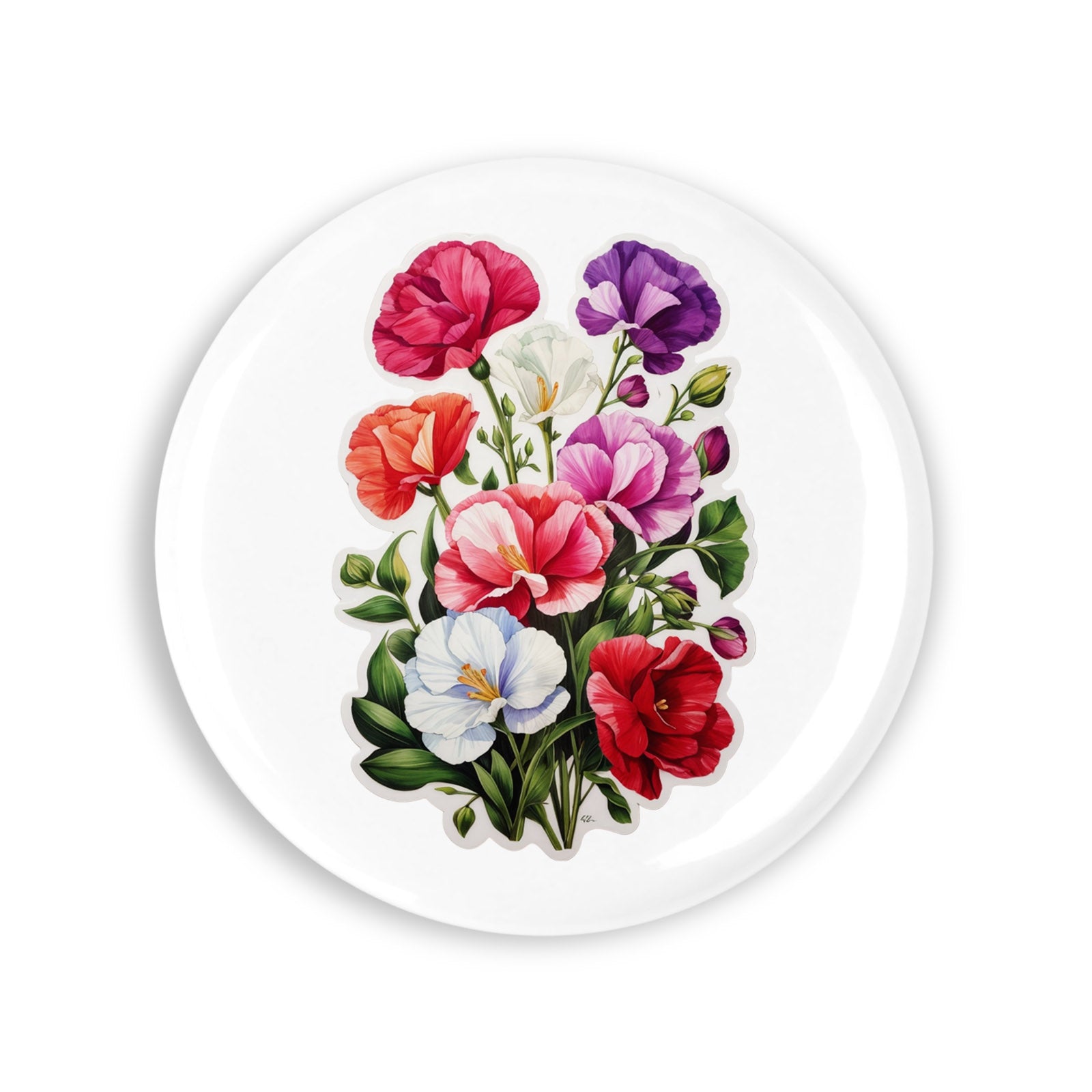 - Set 4 insigne, Buchet de flori de Sweet Pea, NO8938, Metal, 44 mm, Multicolor