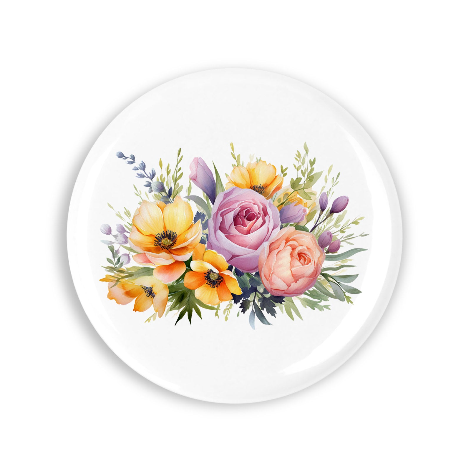 - Set 4 insigne, Buchet de flori Romantic, NO926, Metal, 44 mm, Multicolor