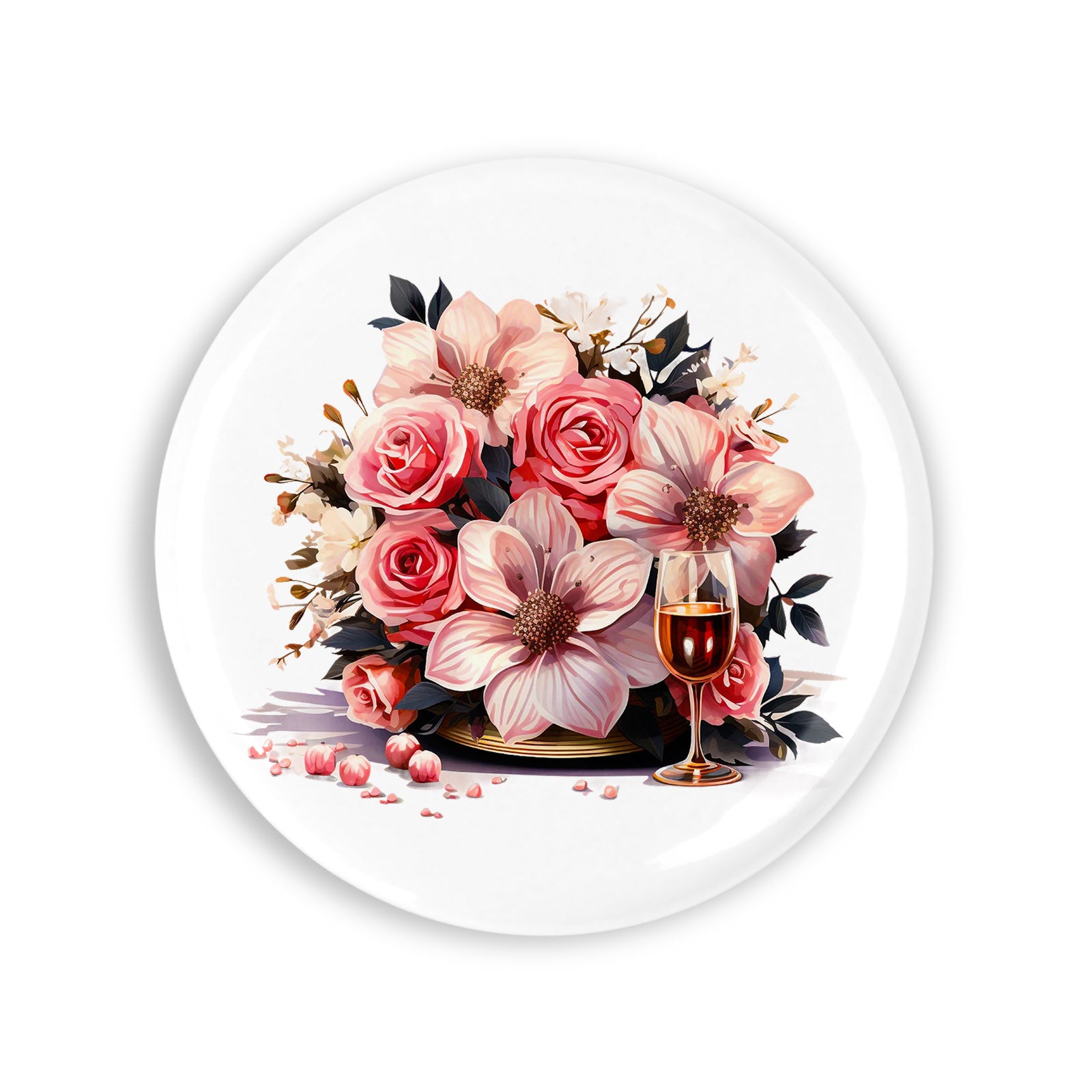 - Set 4 insigne, Buchet de flori si vin, NO3852, Metal, 44 mm, Multicolor