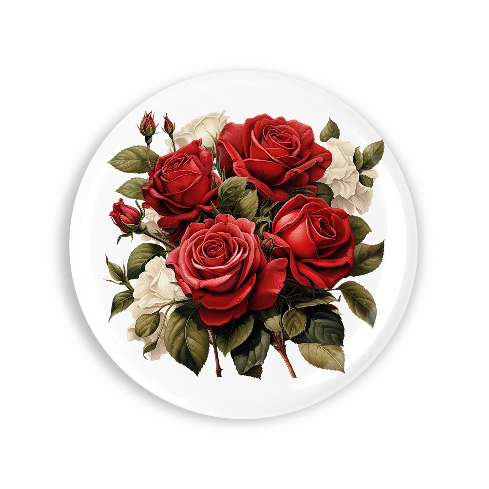 - Set 4 insigne, Buchet de trandafiri rosii si albi, NO1884, Metal, 44 mm, Multicolor
