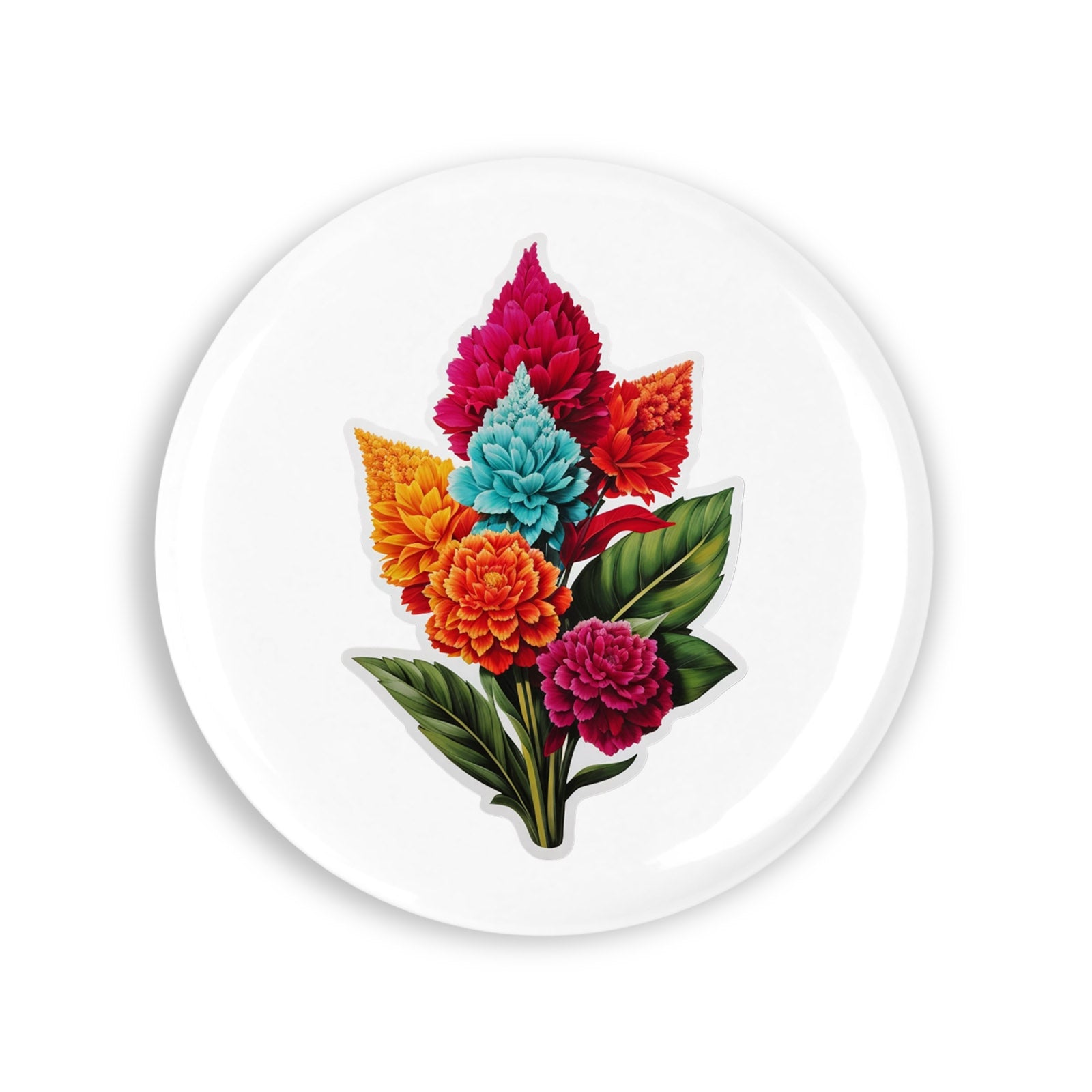 - Set 4 insigne, Buchet flori Creasta cocosului, NO7954, Metal, 44 mm, Multicolor
