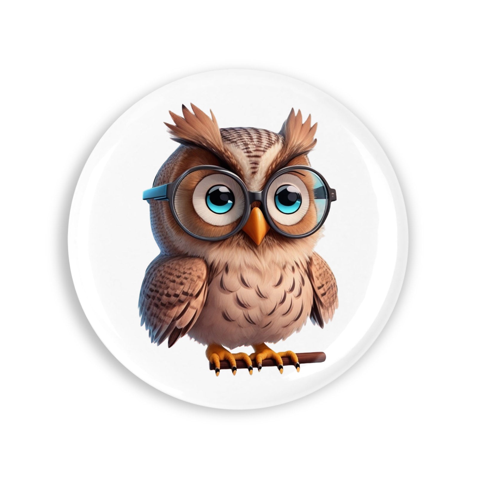 - Set 4 insigne, Bufnita cu ochelari, NO7196, Metal, 44 mm, Multicolor