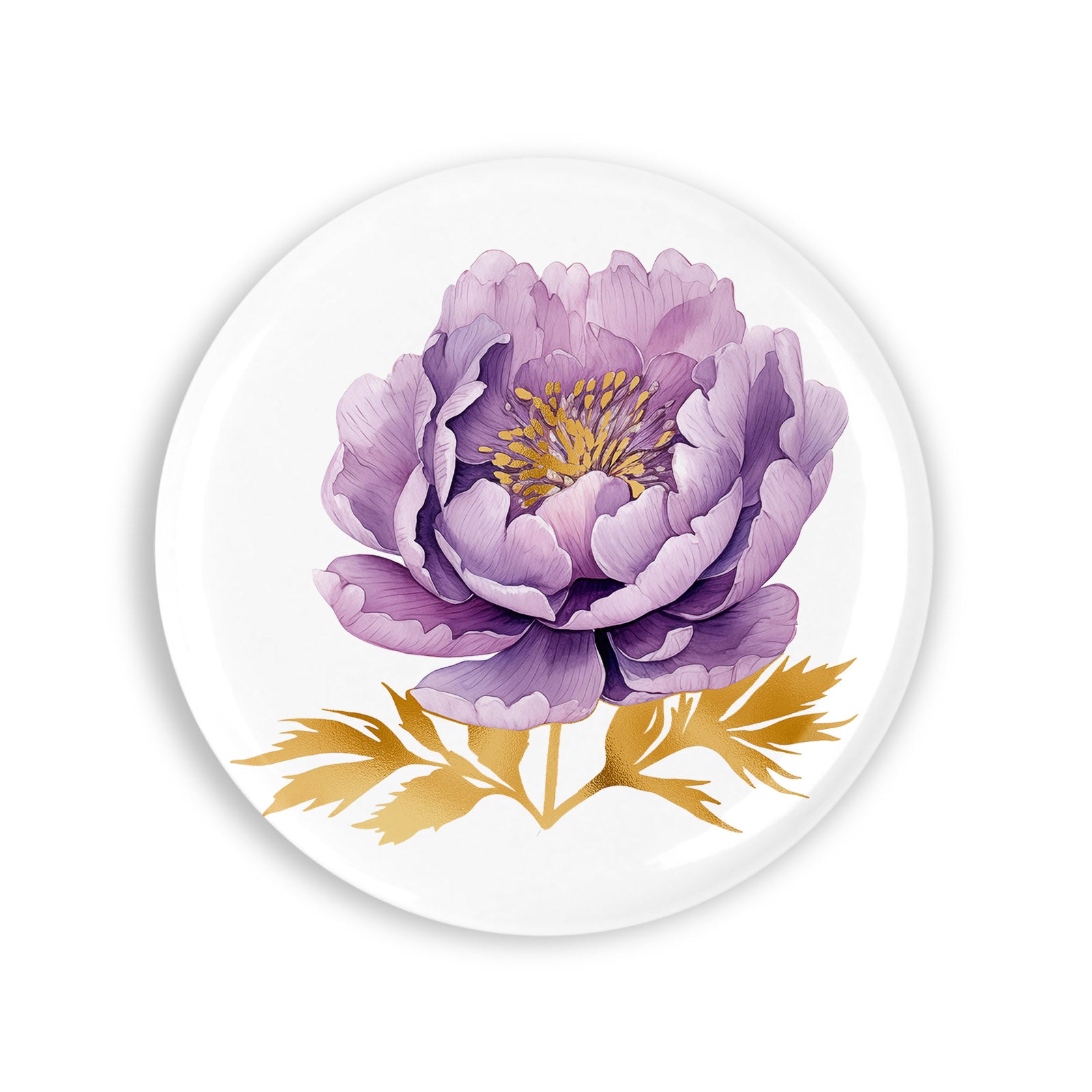 - Set 4 insigne, Bujor mov cu frunze aurii, NO3685, Metal, 44 mm, Multicolor