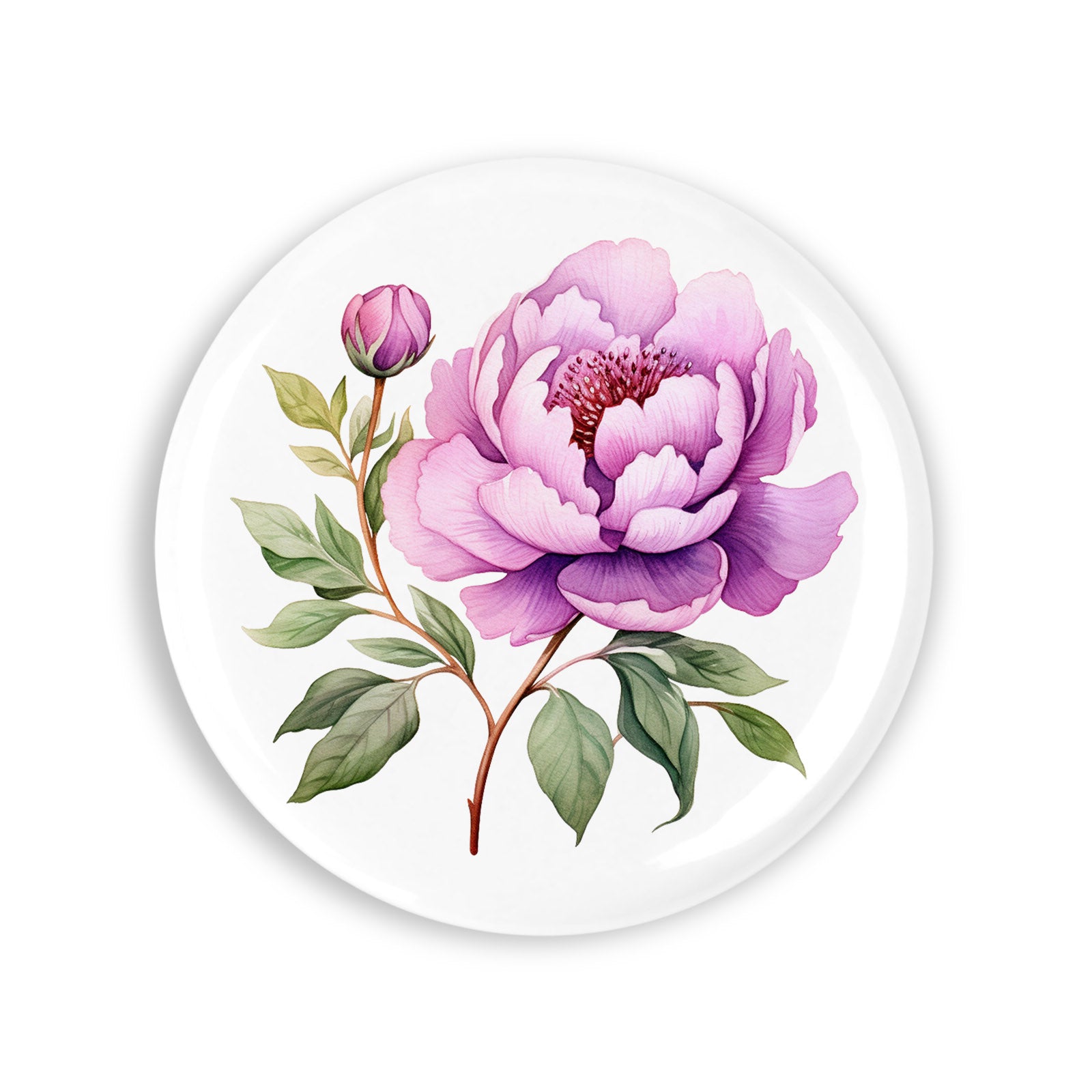 - Set 4 insigne, Bujor roz cu boboc, NO6079, Metal, 44 mm, Multicolor