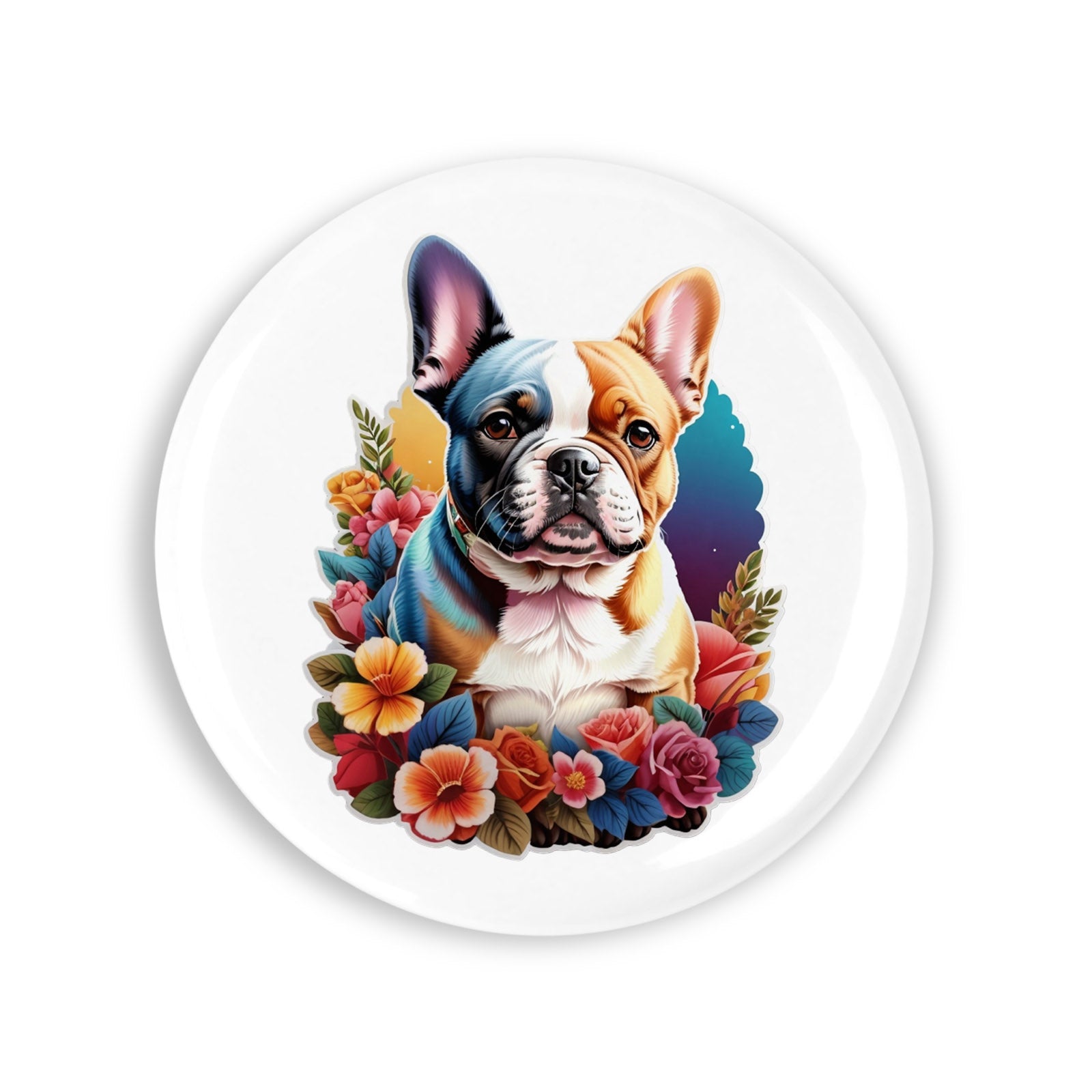 - Set 4 insigne, Buldog francez cu flori, NO8200, Metal, 44 mm, Multicolor