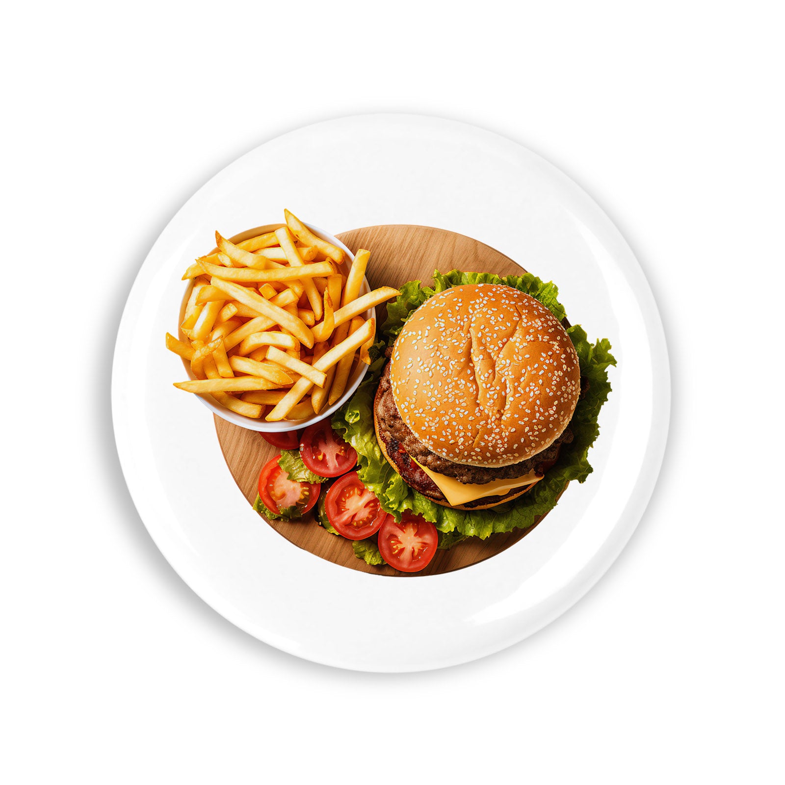 - Set 4 insigne, Burger si cartofi prajiti, NO6160, Metal, 44 mm, Multicolor