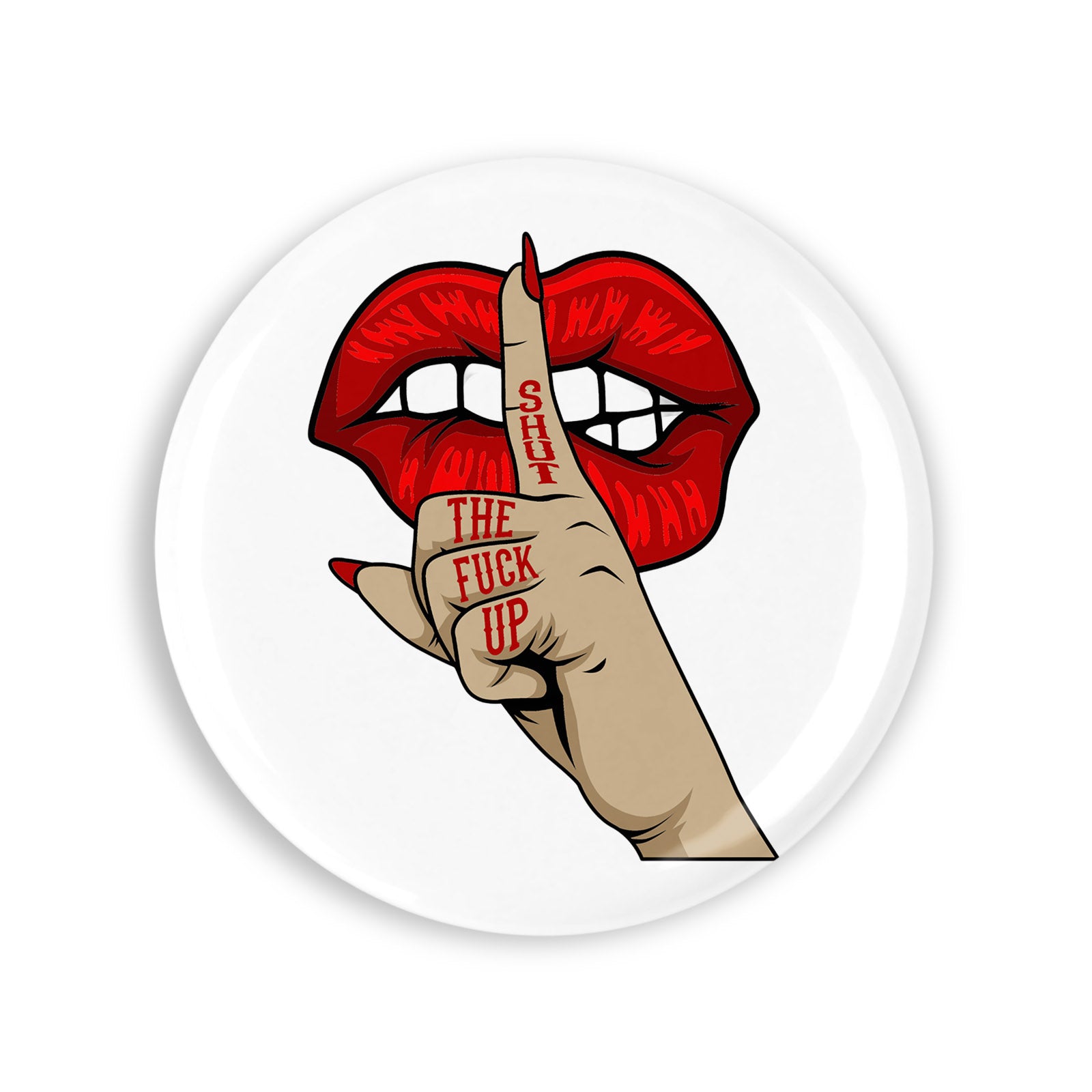 - Set 4 insigne, Buze rosii Shhh TFU, NO9487, Metal, 44 mm, Multicolor