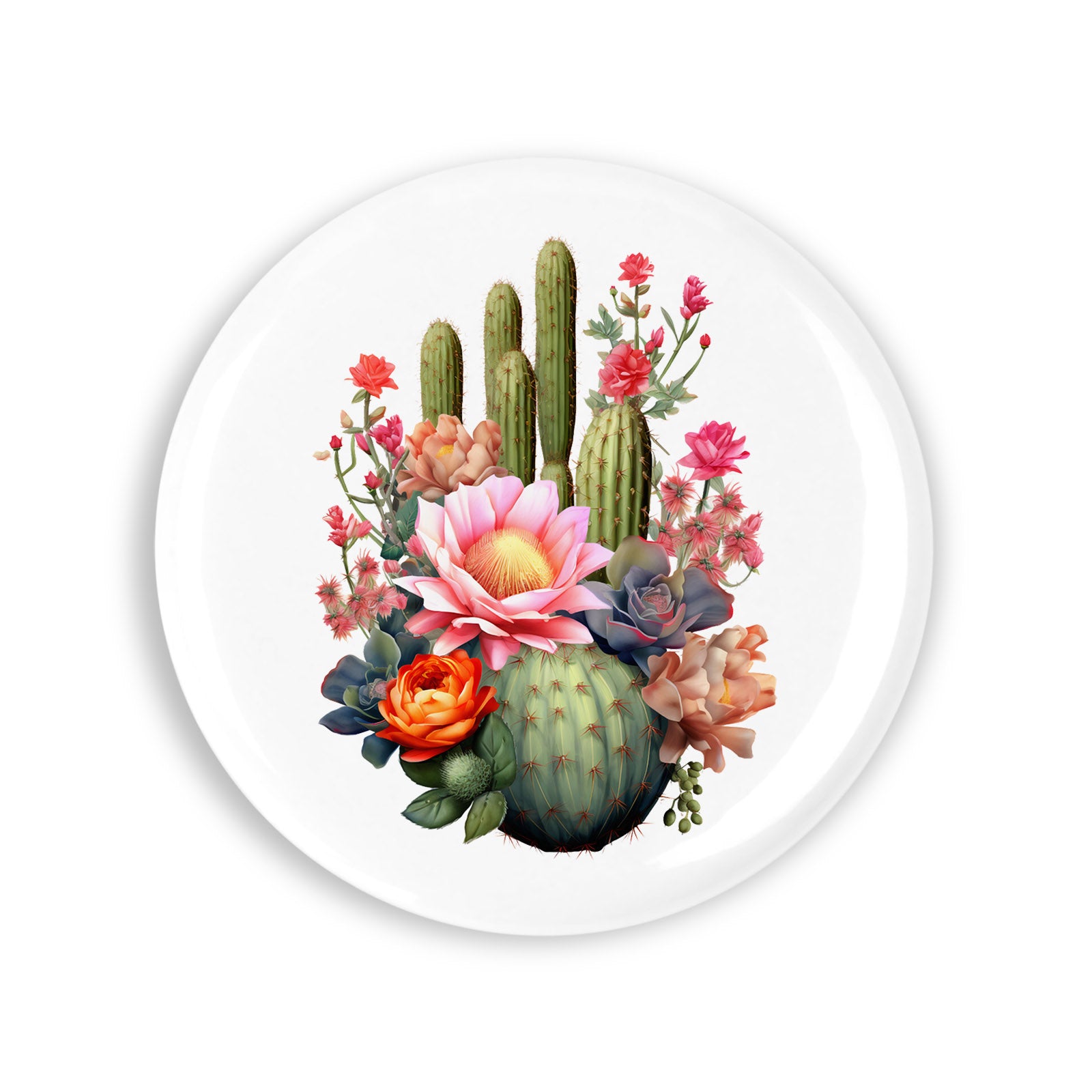- Set 4 insigne, Cactusi infloriti Kaya, NO4338, Metal, 44 mm, Multicolor
