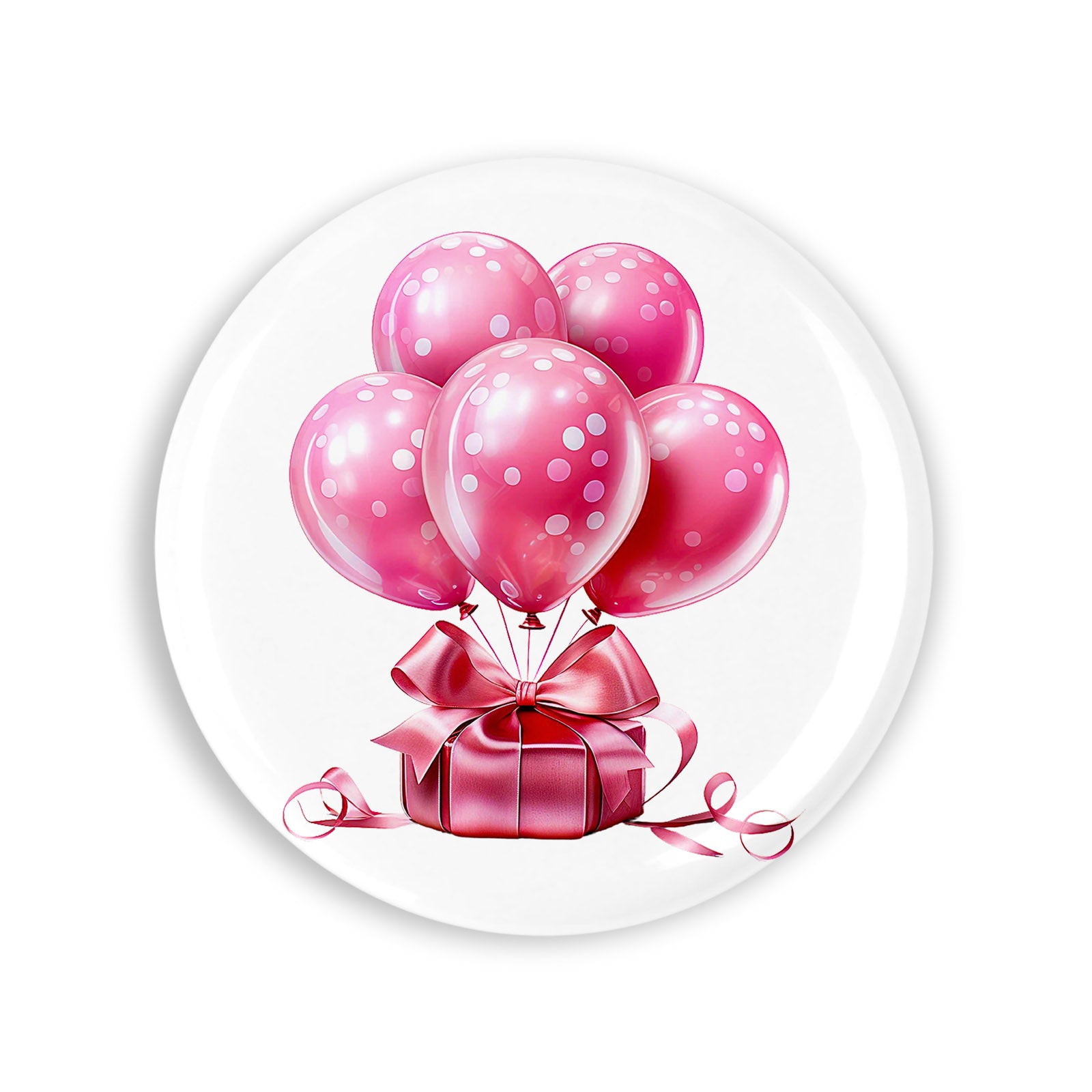 - Set 4 insigne, Cadoul roz cu baloane, NO3744, Metal, 44 mm, Multicolor