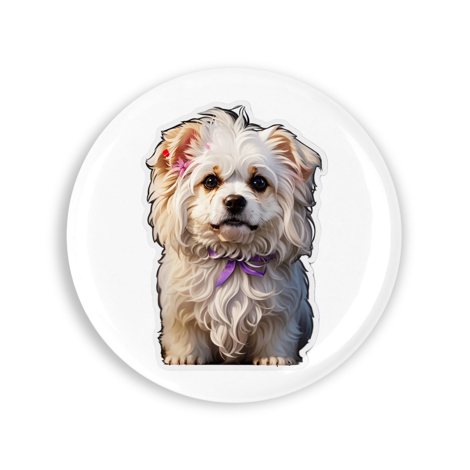 - Set 4 insigne, Caine Bichon maltez cu papion, NO8507, Metal, 44 mm, Multicolor