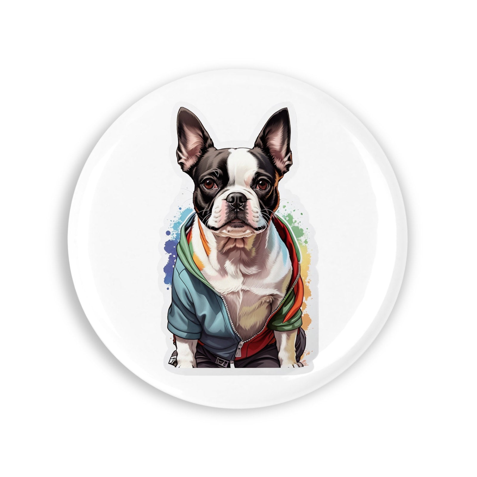 - Set 4 insigne, Caine Boston terrier cu bluza, NO7851, Metal, 44 mm, Multicolor
