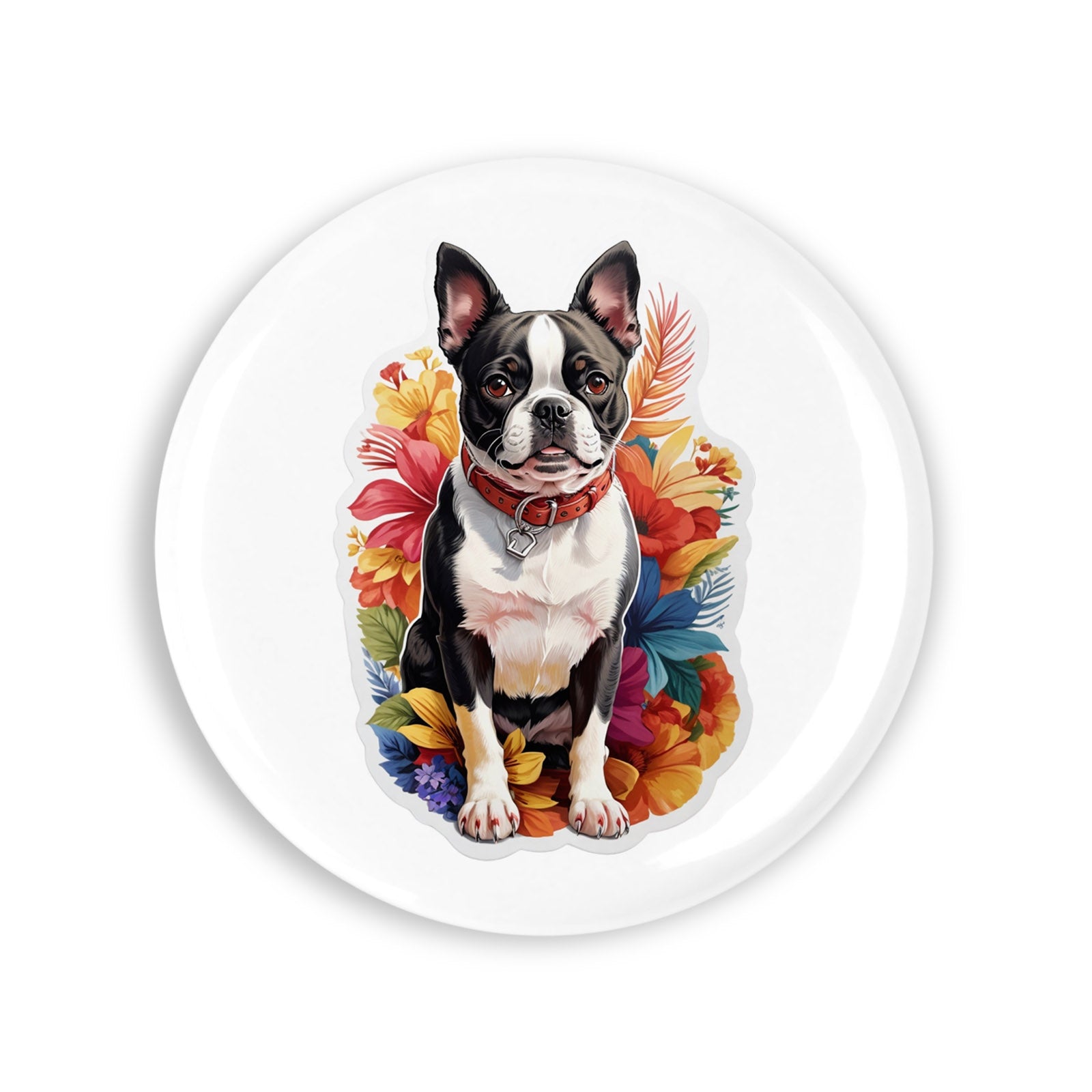 - Set 4 insigne, Caine Boston terrier cu zgarda, NO7853, Metal, 44 mm, Multicolor
