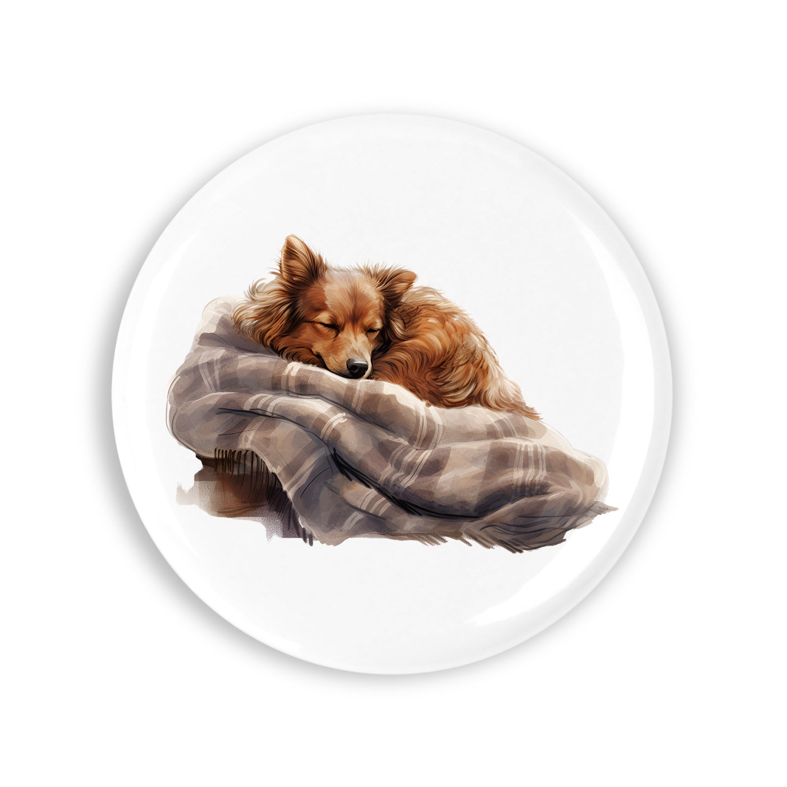 - Set 4 insigne, Caine Chihuahua doarme pe patura, NO5039, Metal, 44 mm, Multicolor