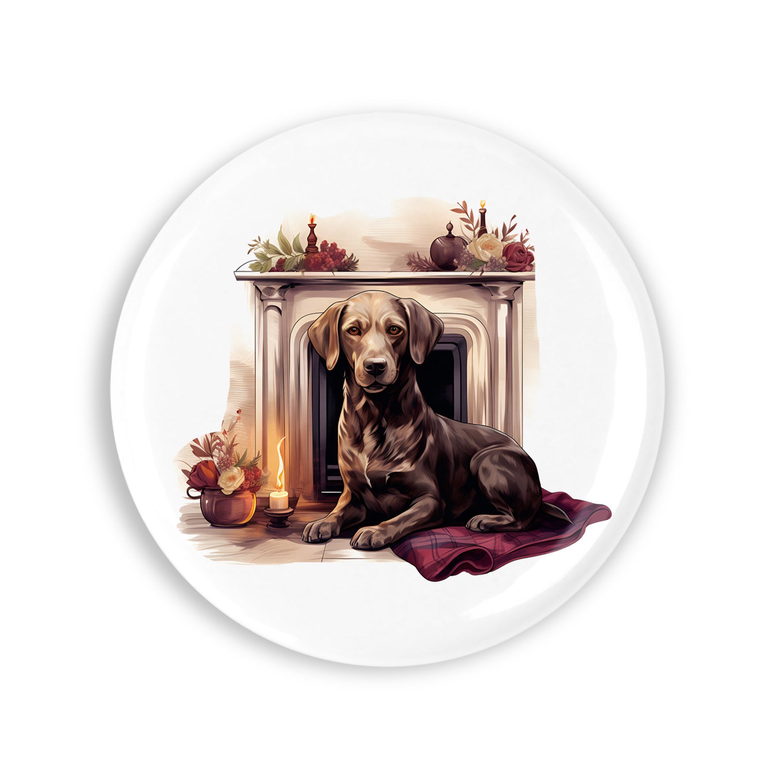 - Set 4 insigne, Caine Dachshund pe patura langa semineu, NO1217, Metal, 44 mm, Multicolor