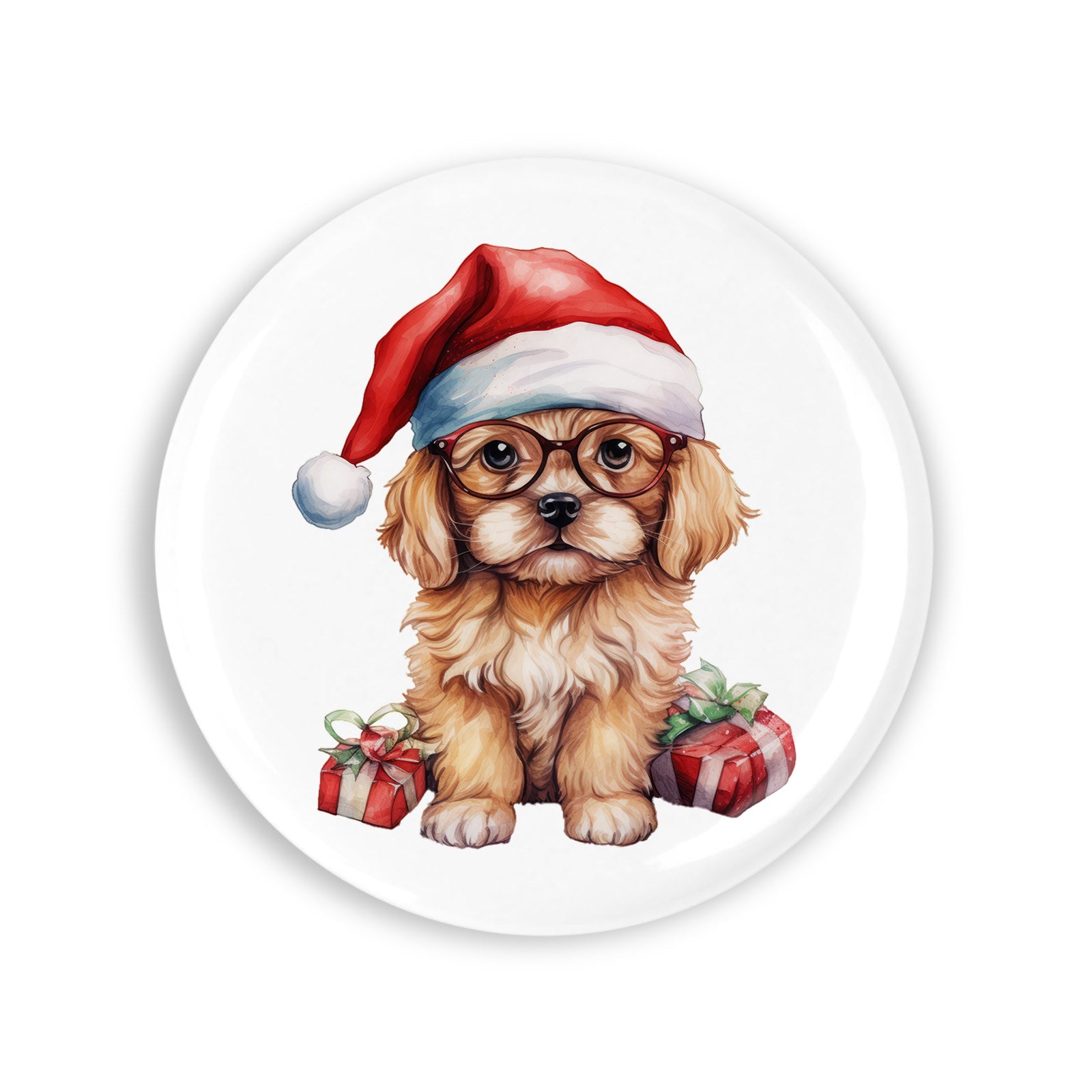 - Set 4 insigne, Caine de craciun cu cadouri, NO5855, Metal, 44 mm, Multicolor