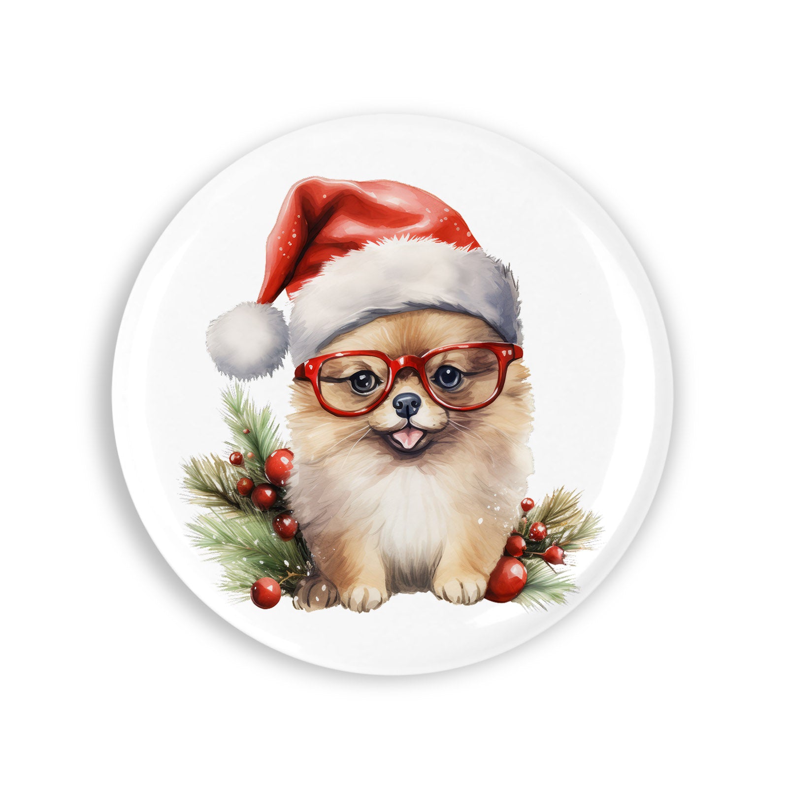 - Set 4 insigne, Caine de craciun Pomeranian, NO3764, Metal, 44 mm, Multicolor