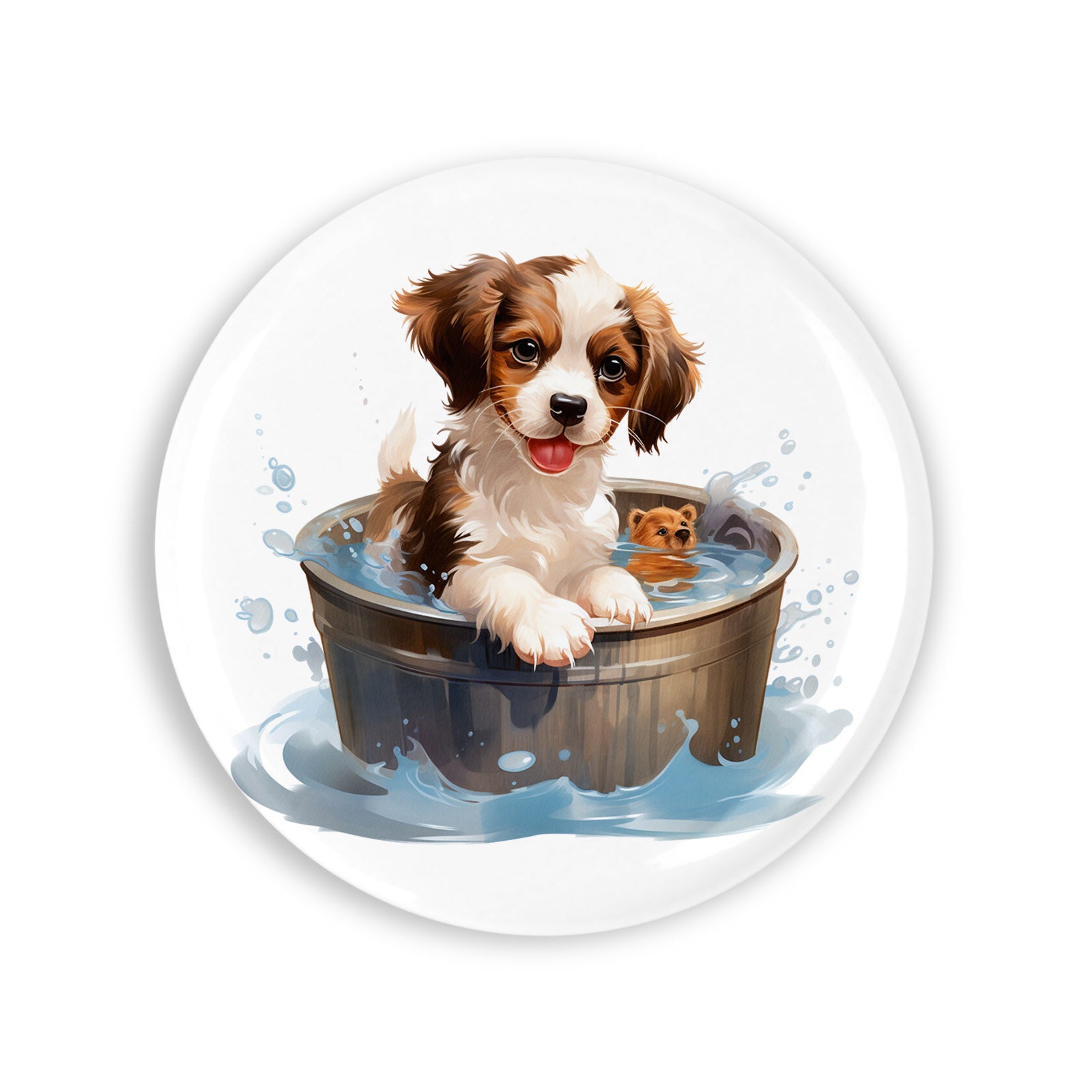 - Set 4 insigne, Caine face baie in copaie, NO339, Metal, 44 mm, Multicolor