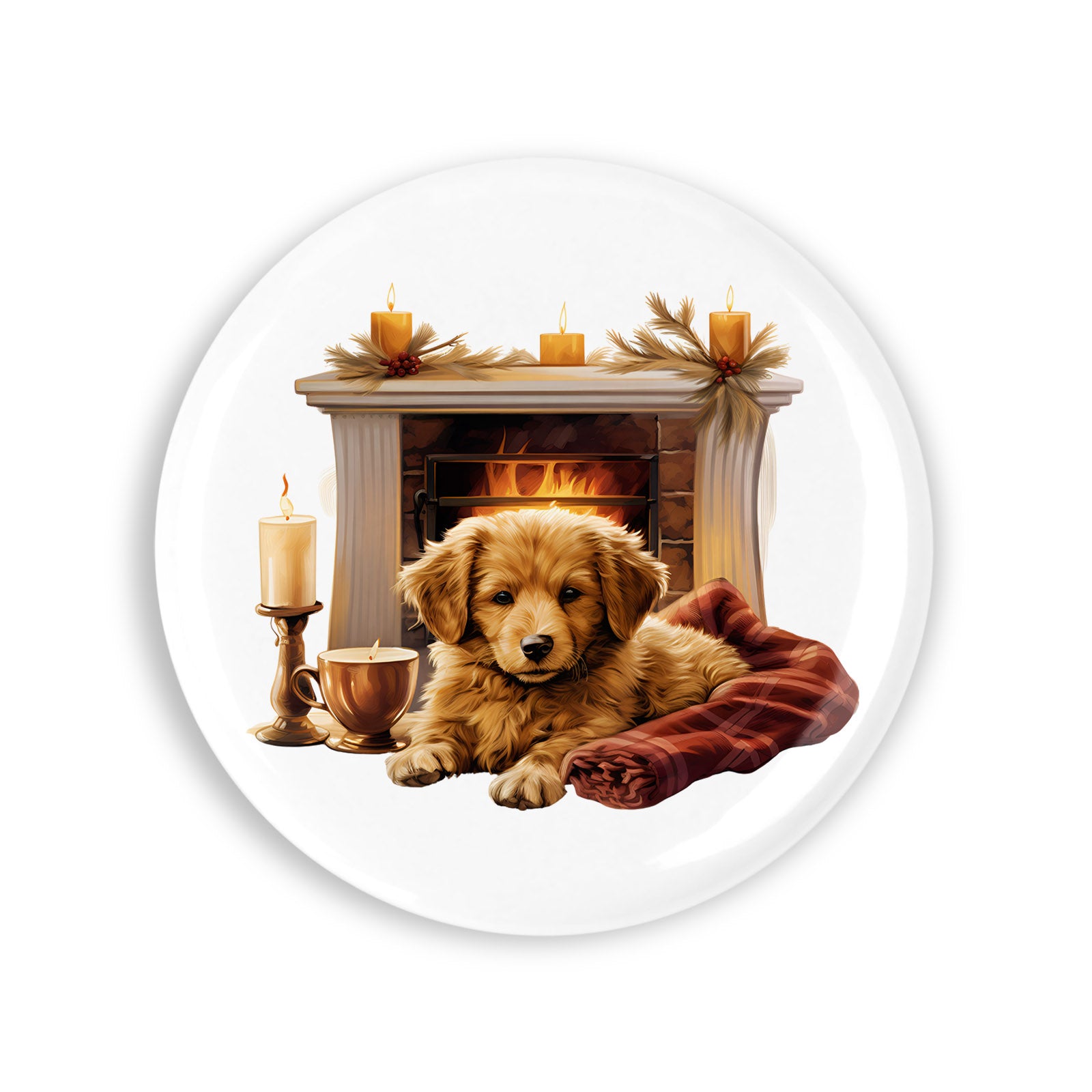 - Set 4 insigne, Caine Gloden Retriever in fata semineului, NO204, Metal, 44 mm, Multicolor