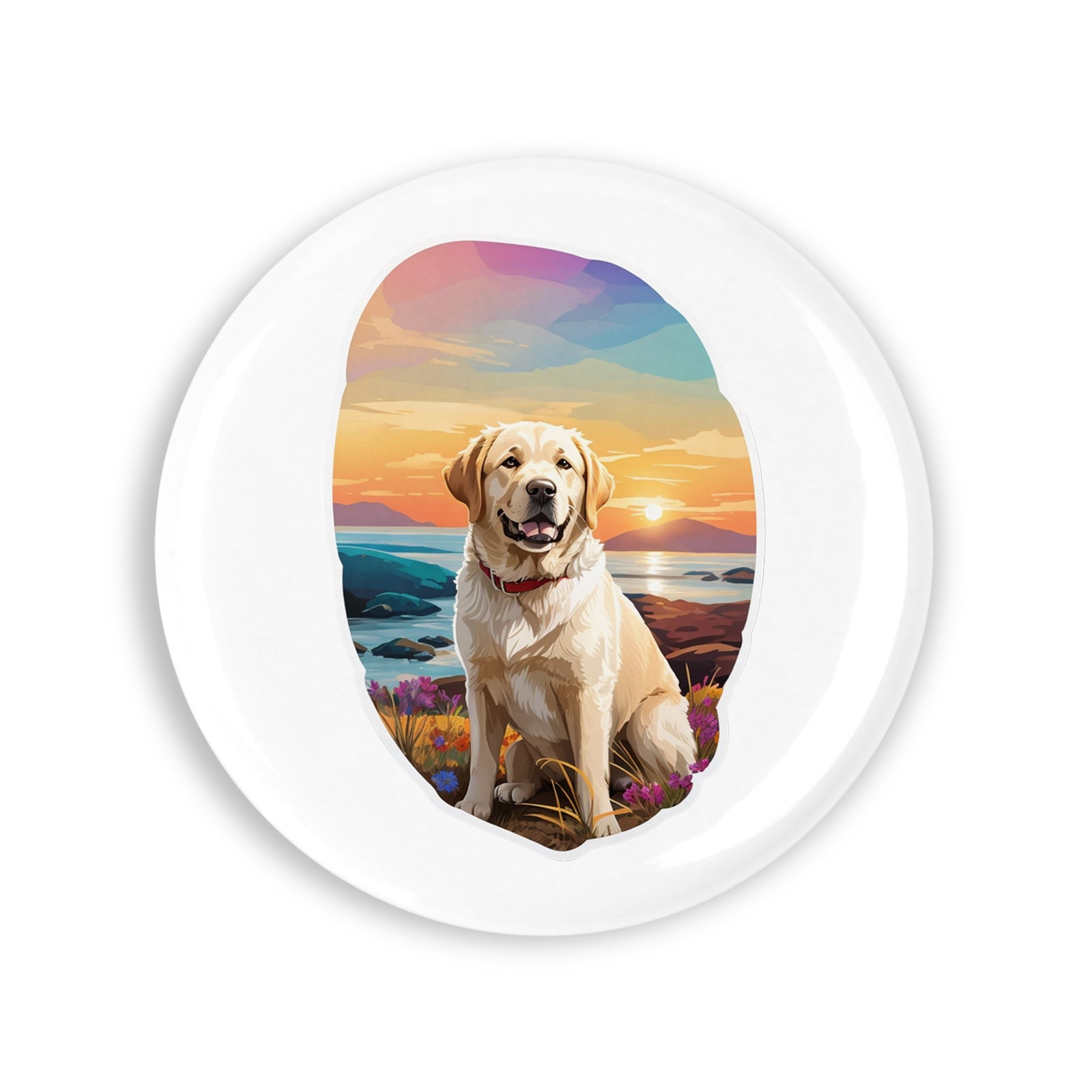 - Set 4 insigne, Caine labrador retriever in apus, NO8411, Metal, 44 mm, Multicolor