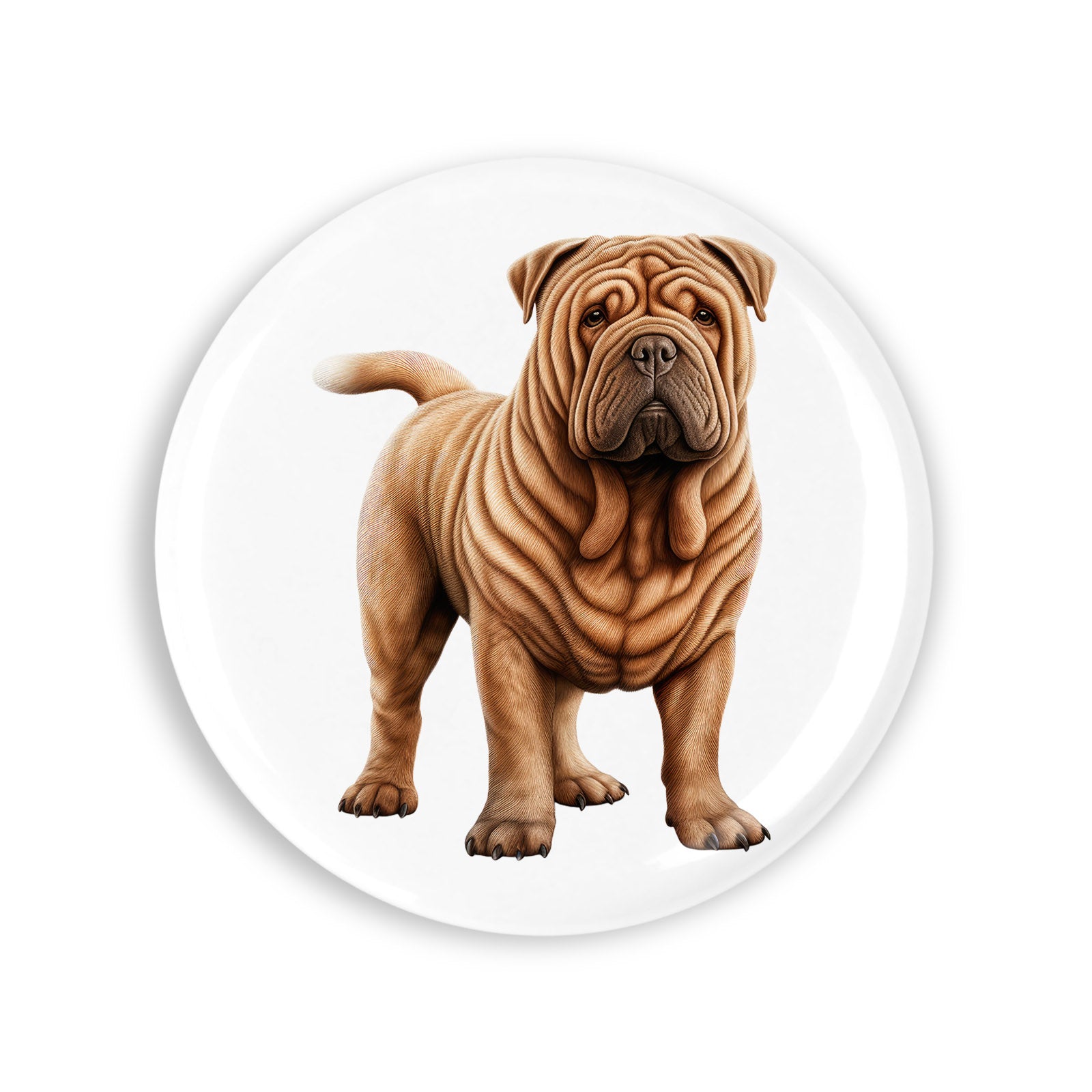 - Set 4 insigne, Caine Shar pei in picioare, NO799, Metal, 44 mm, Multicolor