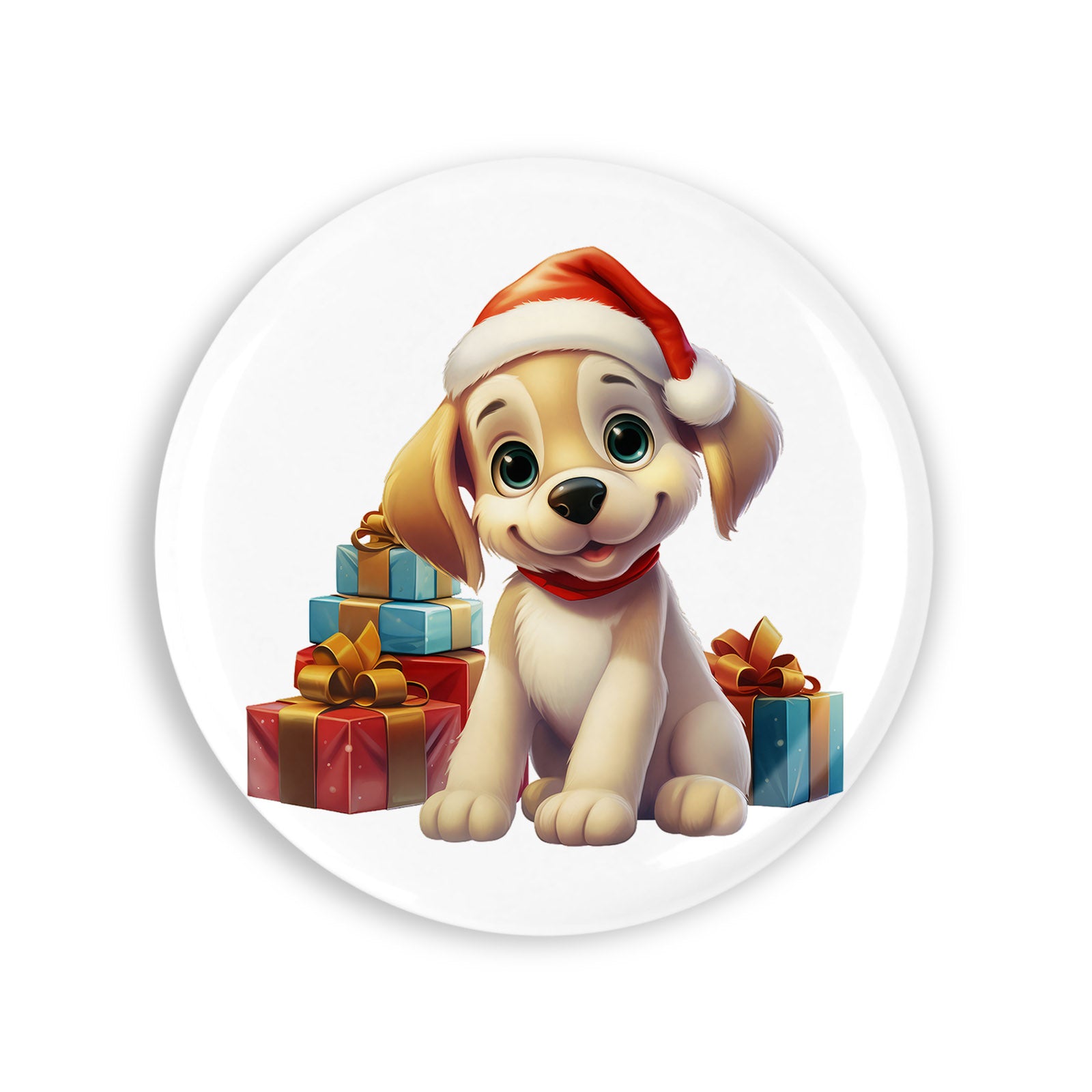 - Set 4 insigne, Cainele cu cadouri de craciun, NO6361, Metal, 44 mm, Multicolor