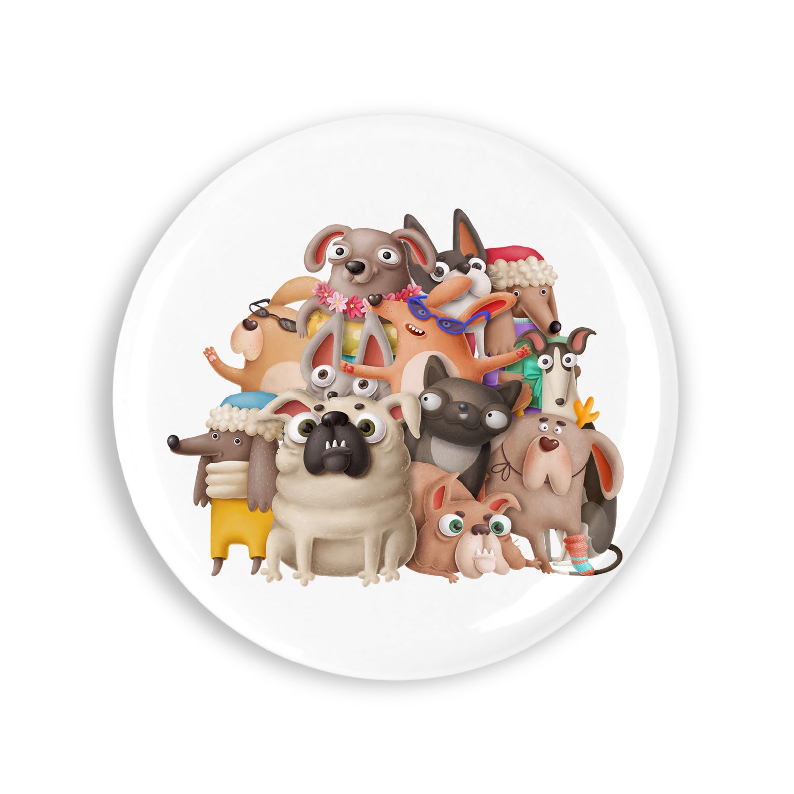 - Set 4 insigne, Caini funny, NO9527, Metal, 44 mm, Multicolor