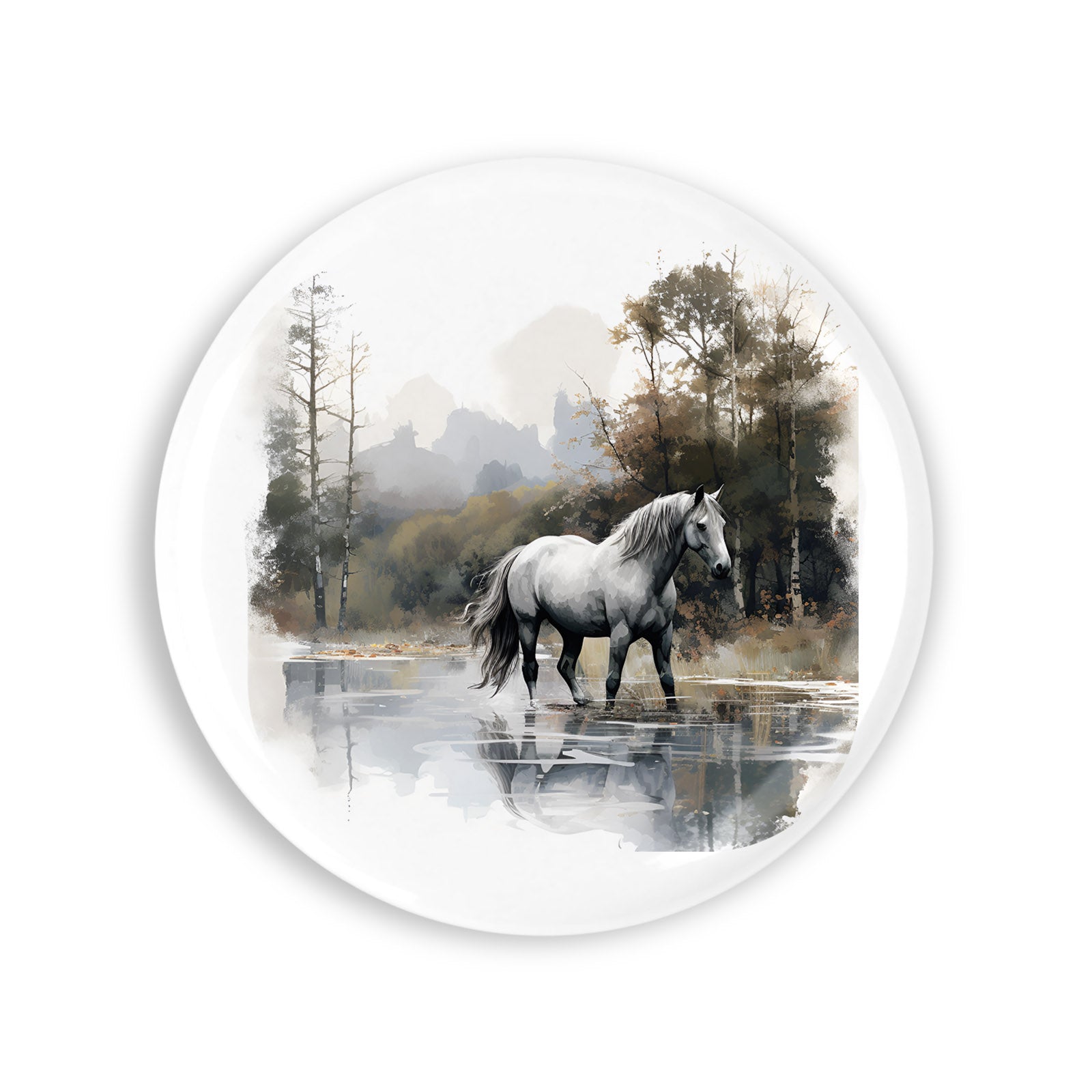 - Set 4 insigne, Cal prin lacul din padure, NO2352, Metal, 44 mm, Multicolor