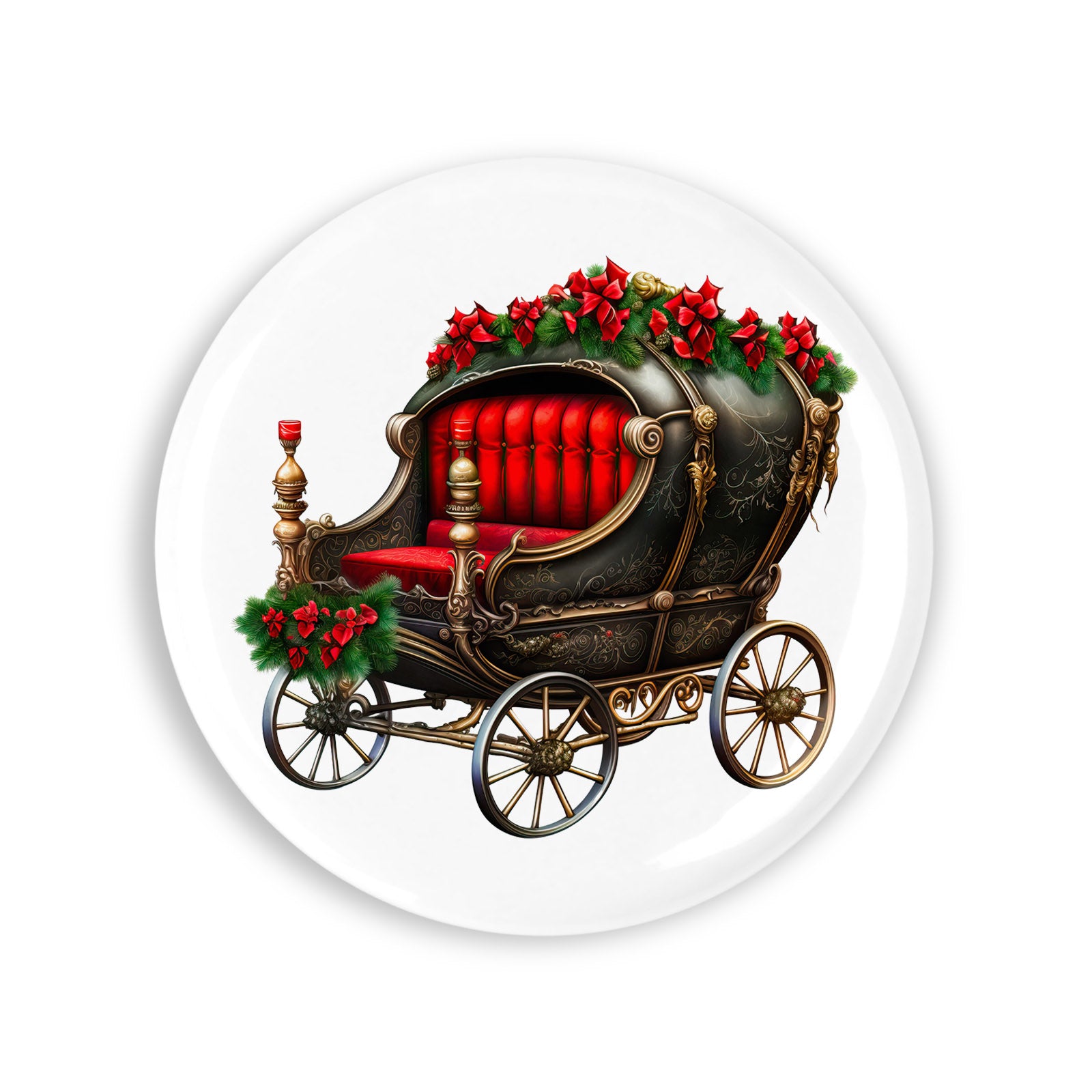 - Set 4 insigne, Caleasca neagra cu scaun tapitat rosu, NO447, Metal, 44 mm, Multicolor