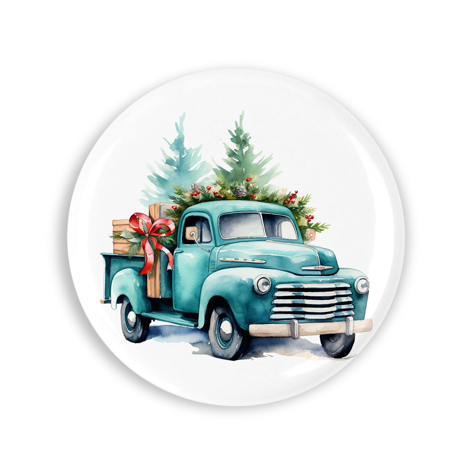 - Set 4 insigne, Camionul cu cadouri de craciun, NO3870, Metal, 44 mm, Multicolor