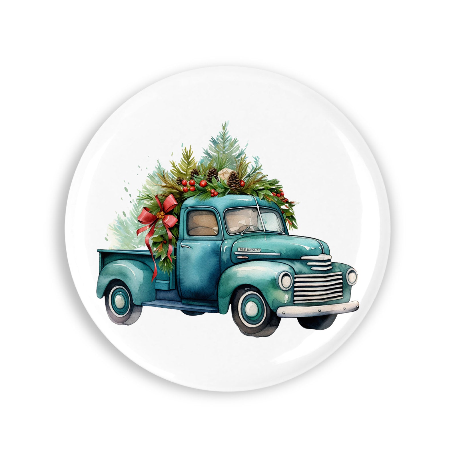 - Set 4 insigne, Camionul cu ornamente de craciun, NO2961, Metal, 44 mm, Multicolor