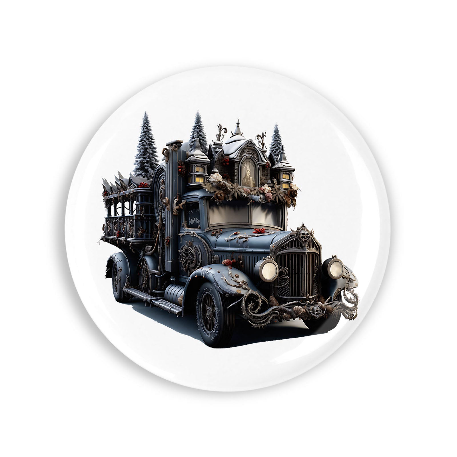 - Set 4 insigne, Camionul negru cu brazi, NO4588, Metal, 44 mm, Multicolor