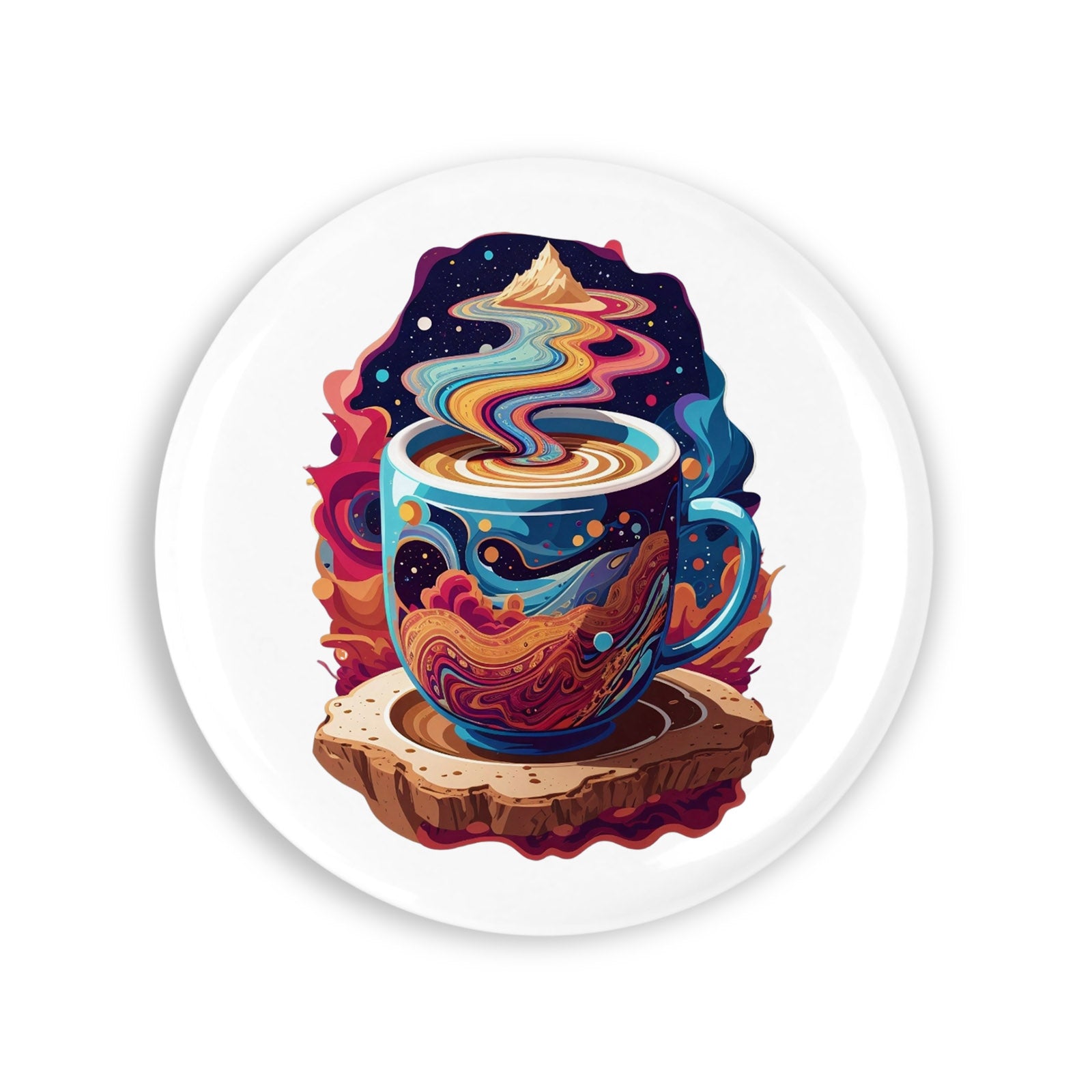 - Set 4 insigne, Cana de cafea cu abur curcubeu, NO7140, Metal, 44 mm, Multicolor