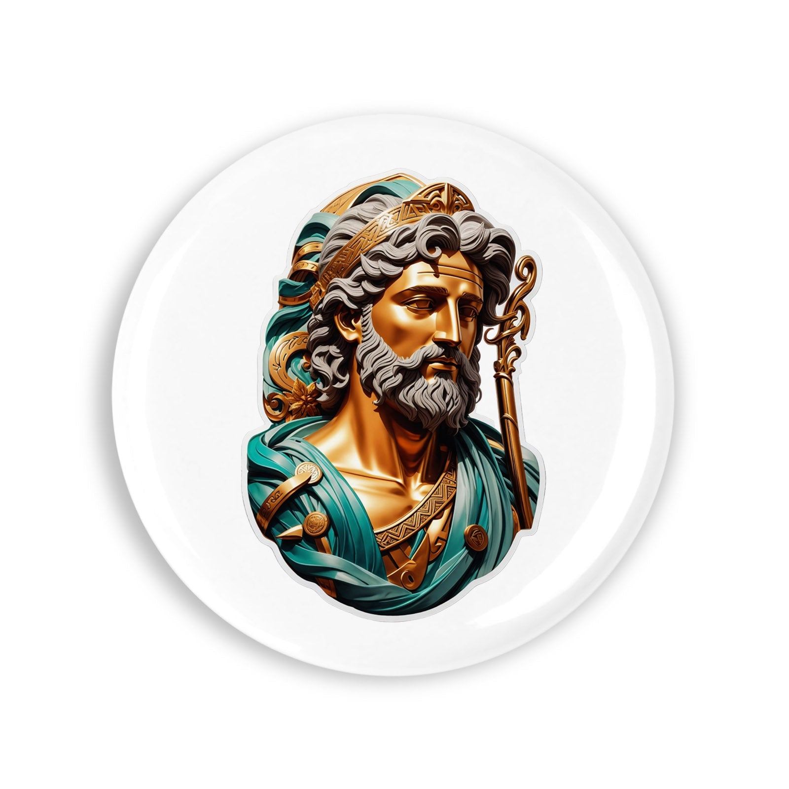 - Set 4 insigne, Cap zeul grec Asclepius cu sceptru, NO7691, Metal, 44 mm, Multicolor
