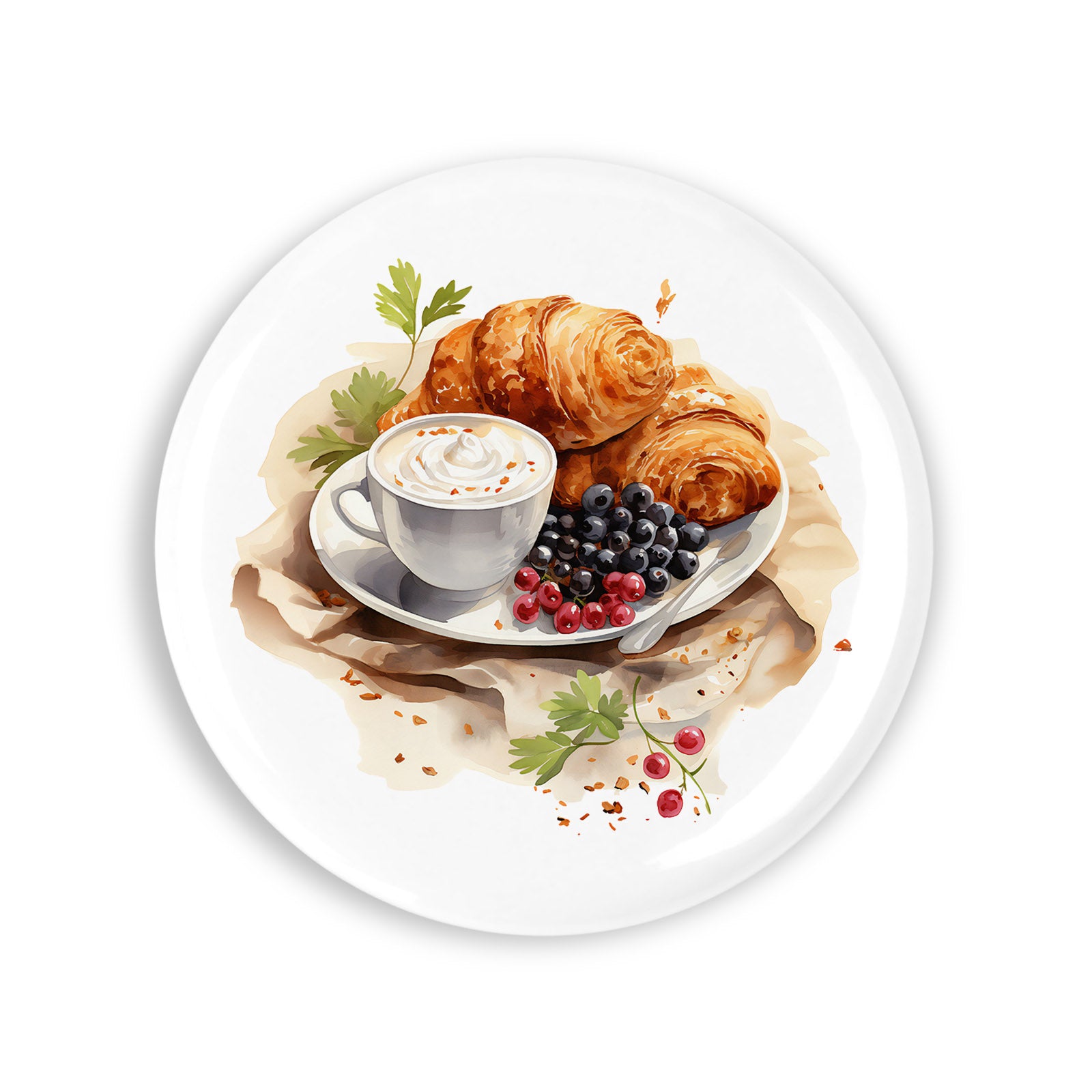 - Set 4 insigne, Capucino cu croissant si afine, NO2649, Metal, 44 mm, Multicolor