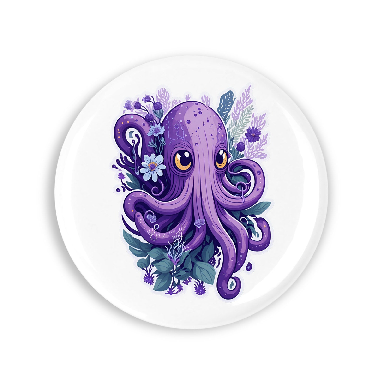 - Set 4 insigne, Caracatita prin flori, NO7059, Metal, 44 mm, Multicolor