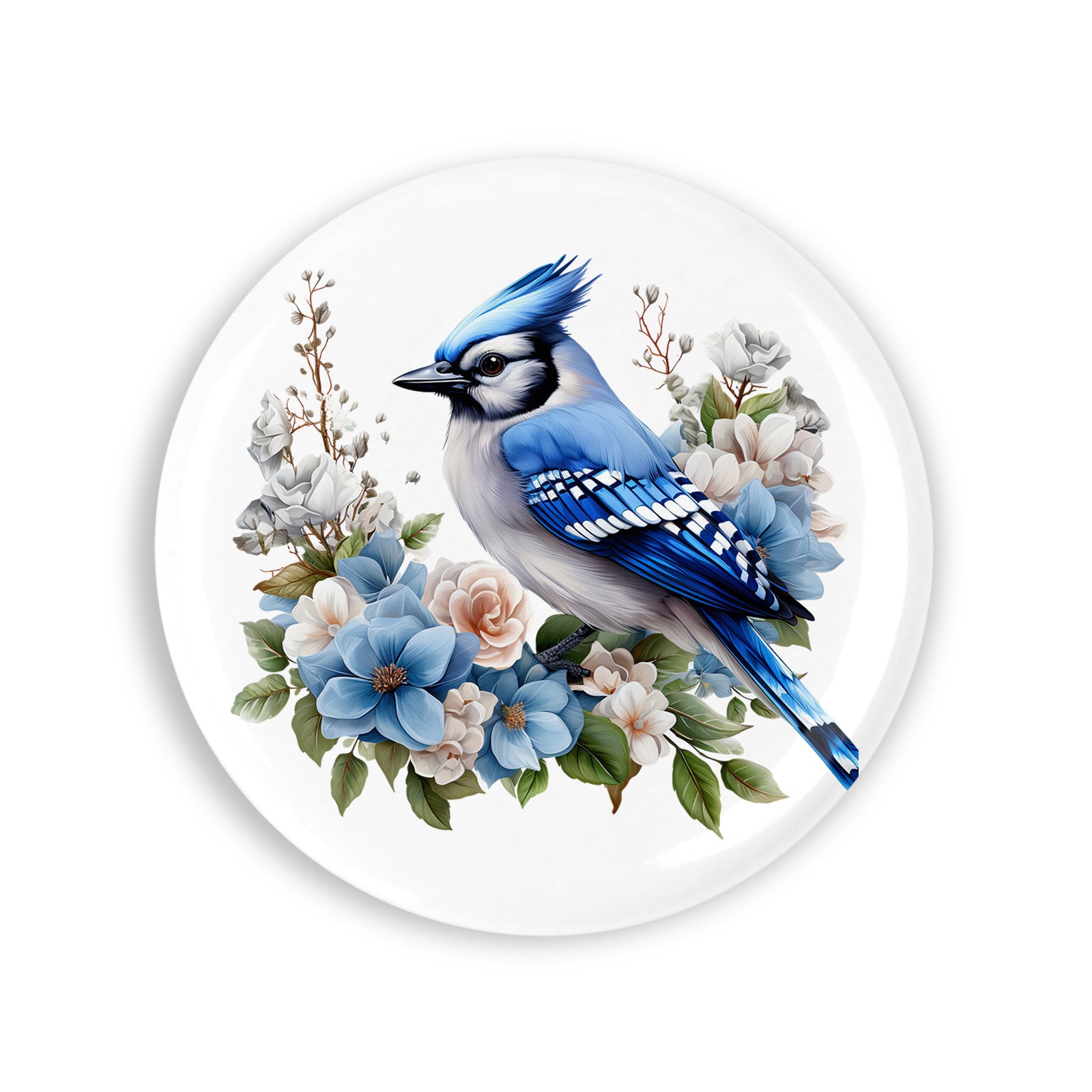 - Set 4 insigne, Cardinal albastru pe grhirlanda de flori, NO1457, Metal, 44 mm, Multicolor